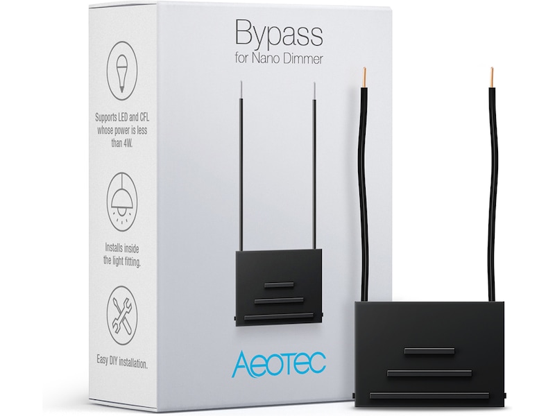 Tillsammans med inbyggda dimmers och dimmerswitchar från tredjepartstillverkare, fungerar Bypass med Aeotecs illumino Dimmer Switch och Nano Dimmer som skapar en komplett Z-Wave-lösning för att dämpa ljus.