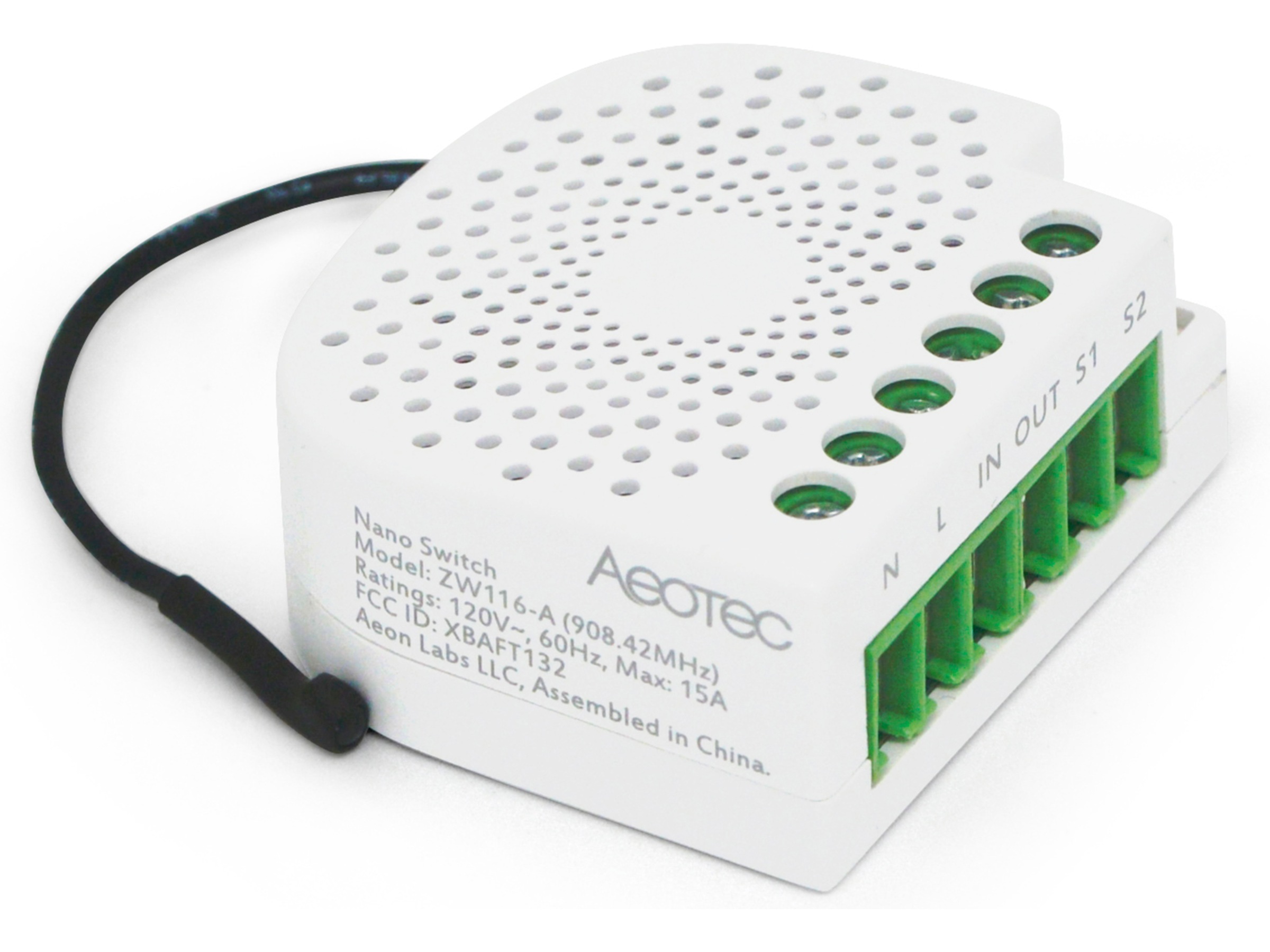60 % mindre än den första Micro Smart Switch som Aeotec var pionjär med, och mäter endast 19,5 mm på djupet, Nano Switch har designats för att enkelt installeras i även de minsta kopplingsdosor bakom en strömbrytare eller uttag.