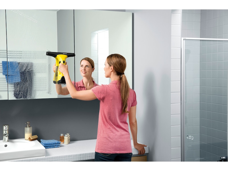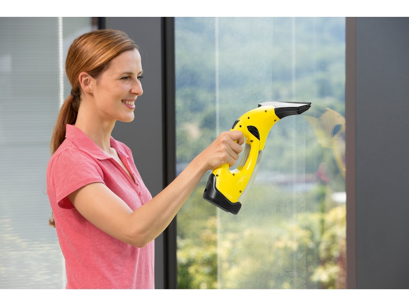Kärchers praktiska och ergonomiska batteridrivna fönstertvätt gör fönsterputsningen dessutom mycket hygienisk, eftersom du aldrig behöver vidröra smutsvattnet. Tack vare det medföljande smala sugmunstycket kan även små eller svåråtkomliga ytor, som exempelvis fönster med små glasrutor eller vitrinskåp, tvättas utan ansträngning.