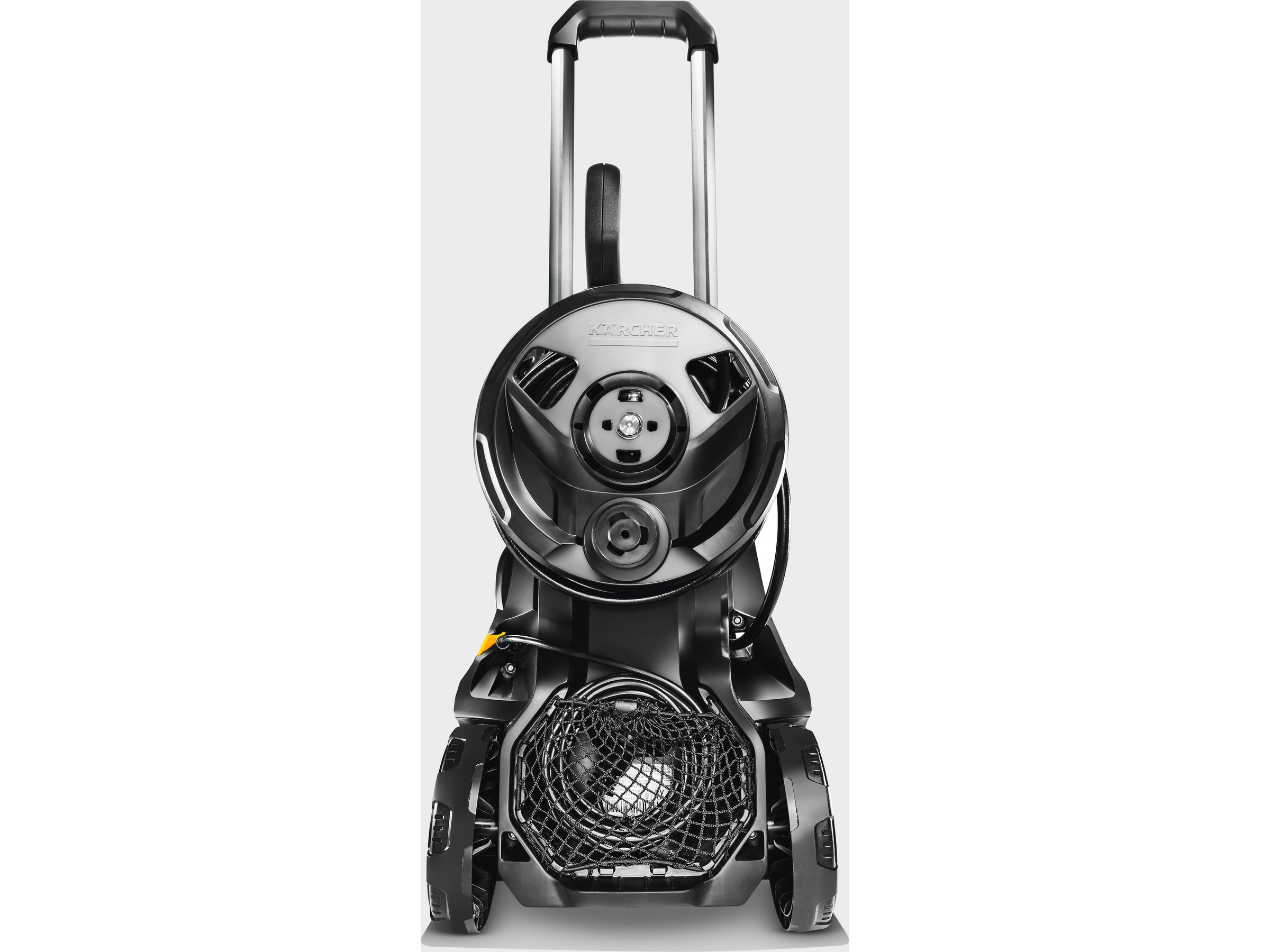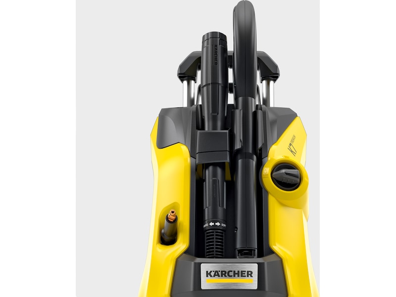 Maskinen har en slangvinda med 10 meter högtrycksslang och är kompatibel med alla Kärchers tillbehör.