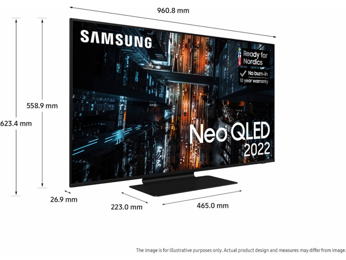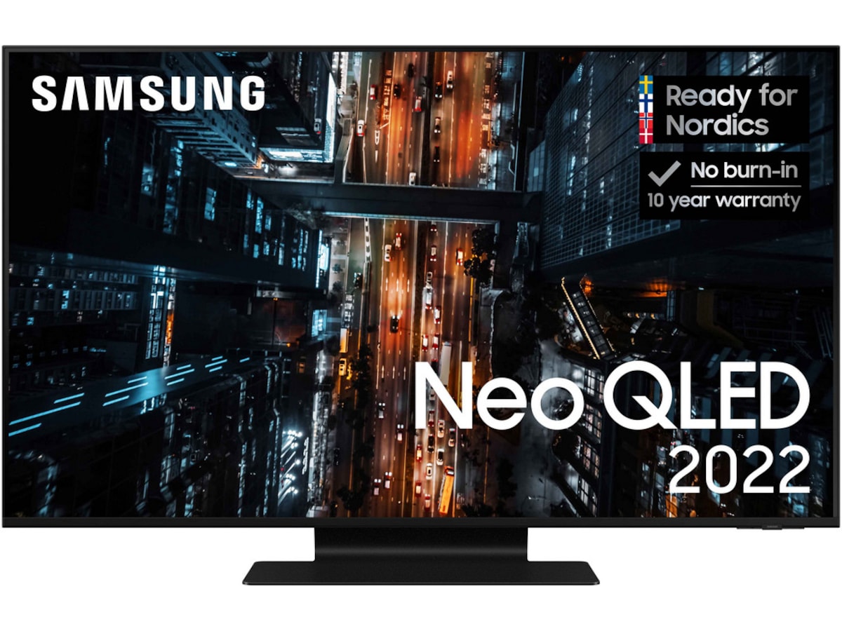 * När du köper 2022 QLED, Neo QLED eller Neo QLED 8K erbjuder Samsung 10-års skärminbrännings-garanti. Garantin gäller i 10 år från köpdatum. För att garantin ska gälla krävs en kopia av köpkvittot och registrering på Samsungs webbplats inom 90 dagar efter köpet. Gäller från 1 apr. 2022 - 31 aug 2023.