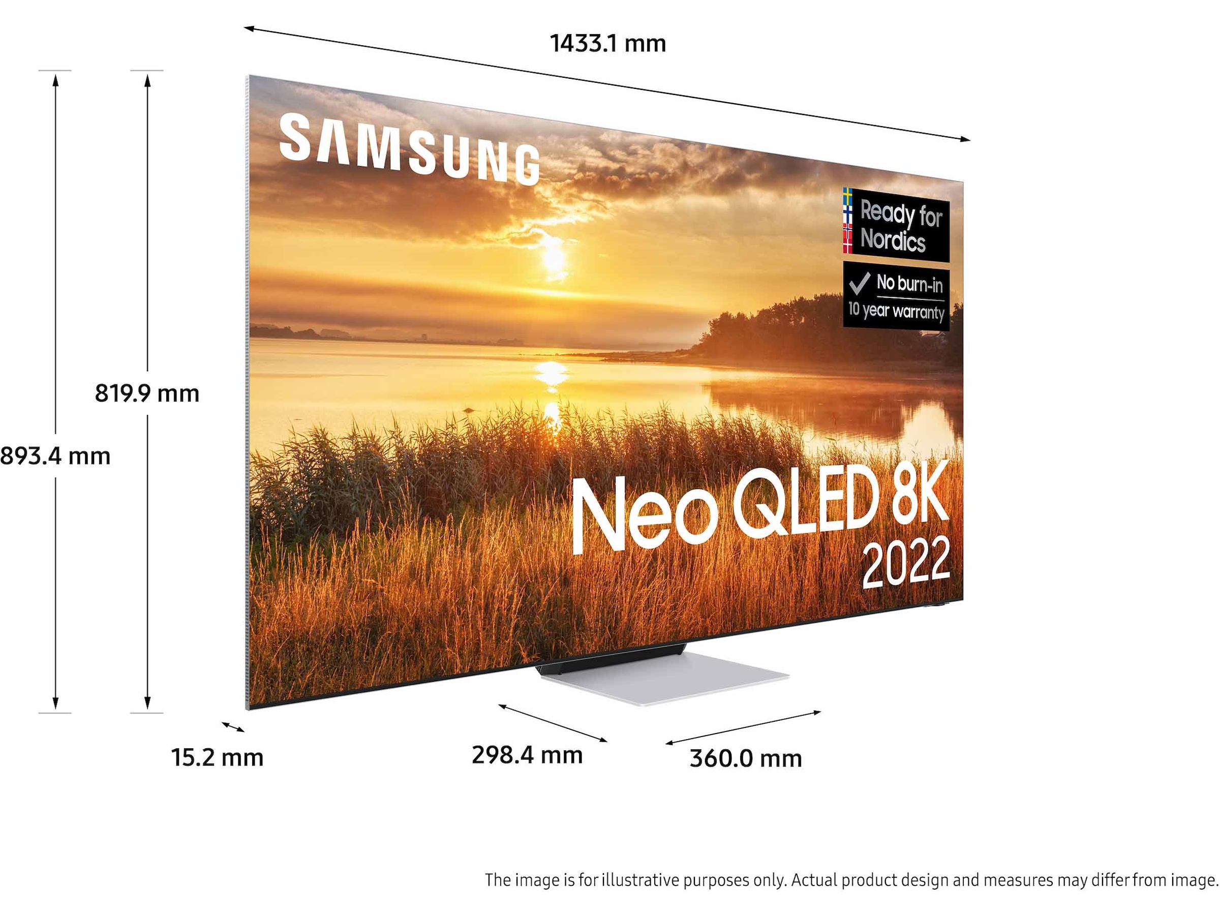 * När du köper 2022 QLED, Neo QLED eller Neo QLED 8K erbjuder Samsung 10-års skärminbrännings-garanti. Garantin gäller i 10 år från köpdatum. För att garantin ska gälla krävs en kopia av köpkvittot och registrering på Samsungs webbplats inom 90 dagar efter köpet. Gäller från 1 apr. 2022 - 31 aug 2023.