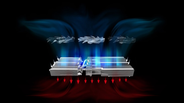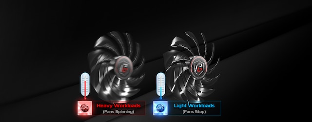 ASRock's anpassade randiga axiella fläkt levererar förbättrat luftflöde för att optimera kylning från inte bara randen på varje fläktblad utan också poleringsytan på botten.