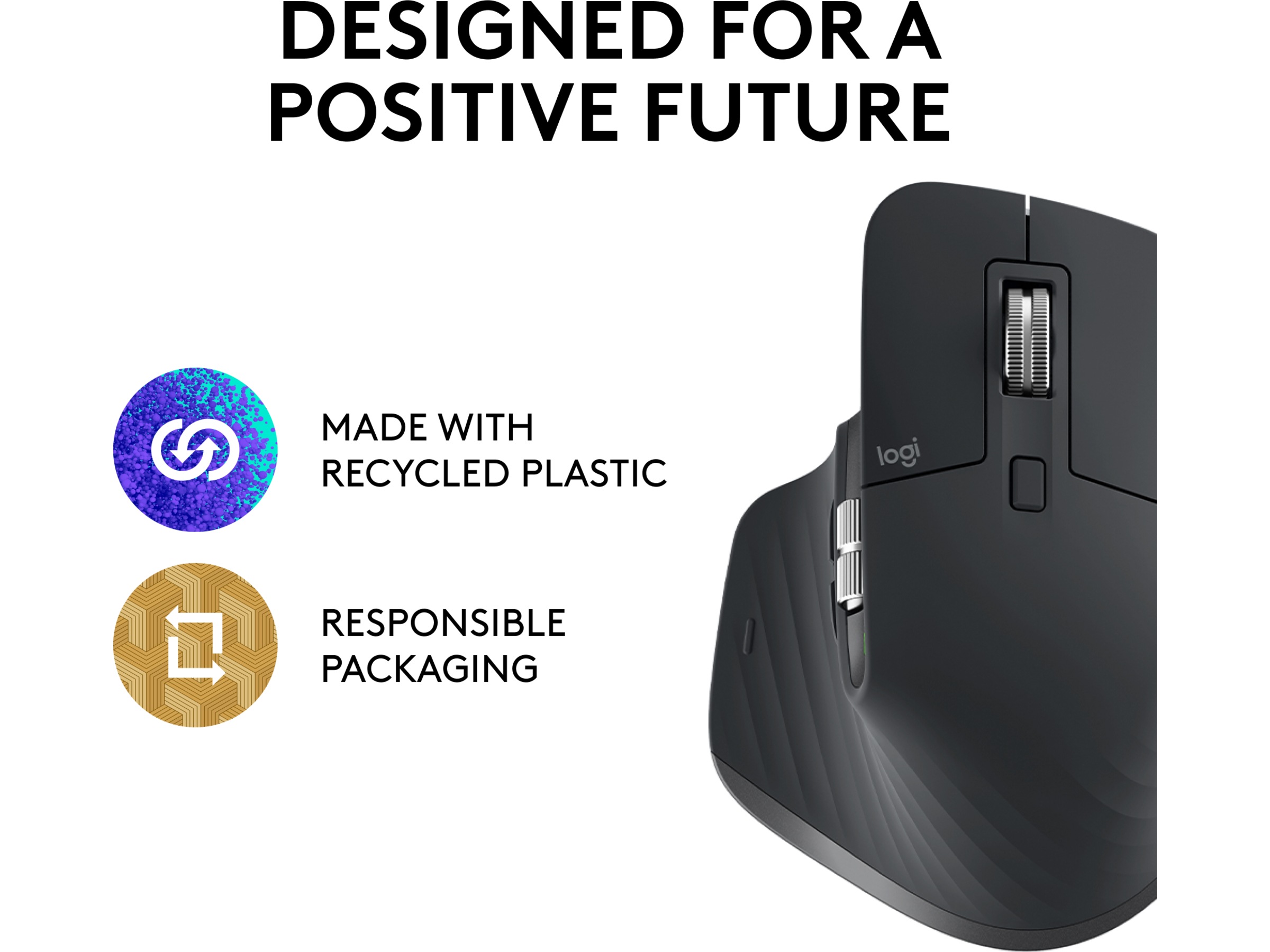 Egenskaper MagSpeed-hjul, Easy-Switch-teknik, Quiet Clicks-teknik, Gestfunktion, Tumstöd, Logitech Darkfield Laser Tracking, återuppladdningsbart batteri, Tumhjul, Anpassningsbar DPI