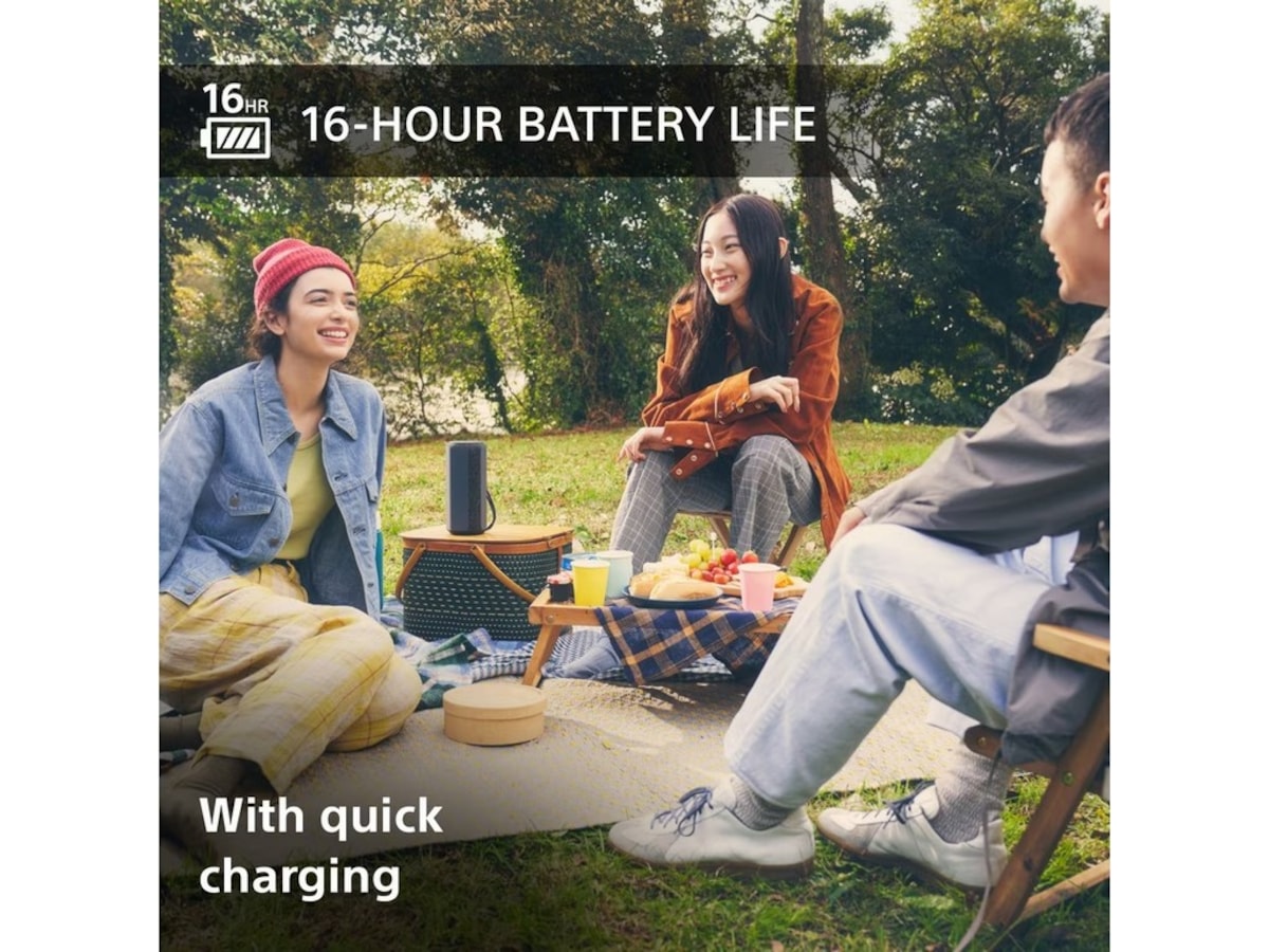 SRS-XE200 är vatten- och dammavvisande enligt IP67, saltvattentålig samt stötsäker. Dessutom med en enorm batteritid på 16h och snabb laddning (10 minuters laddning för 70 minuters uppspelning) kan du hålla feststämningen på topp hela dagen och natten.