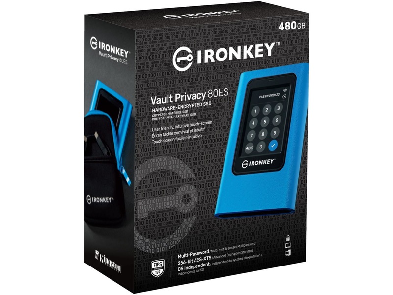 Kingston IronKey™ Vault Privacy 80 External SSD är Kingstons första innovativa OS-oberoende hårdvarukrypterade externa SSD med pekskärm för dataskydd. VP80ES skyddar mot Brute Force-attacker och BadUSB med digitalt signerad firmware. Skydd mot Brute Force-attacker kryptoanalyserar enheten om Admin- och användarlösenorden skrivs in felaktigt 15 gånger 1 gång i rad som standard. Enheten är FIPS 197-certifierad med XTS-AES 256-bitars kryptering med en Common Criteria EAL5+ (CC EAL5+) certifierad säker mikroprocessor och är TAA-kompatibel.
