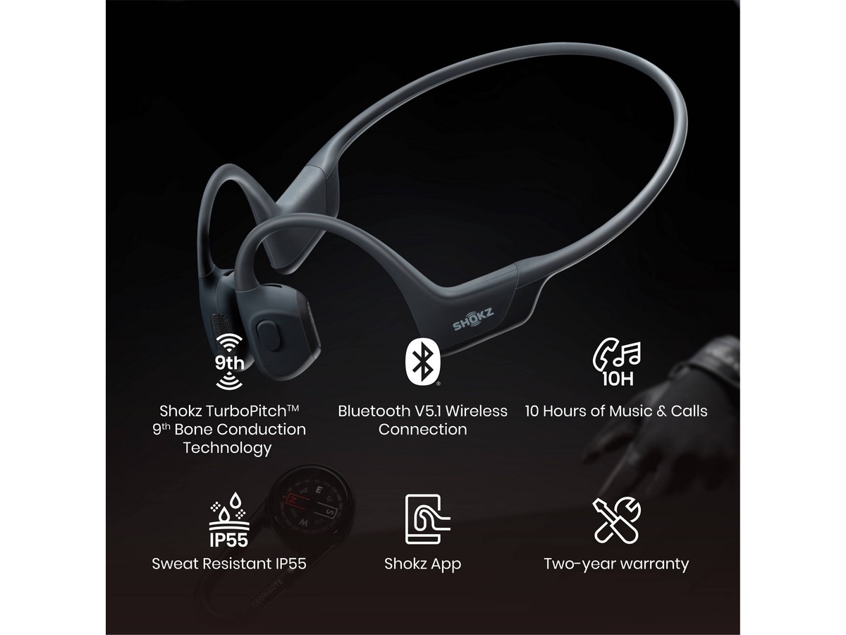 Våra nya flaggskeppshörlurar för sport har patenterad 9:e generationens benledningsteknik (kallad Shokz TurboPitchTM-teknik) och en förfinad design med vår signatur för situationsmedvetenhet och bekväma passform som du känner till och älskar.