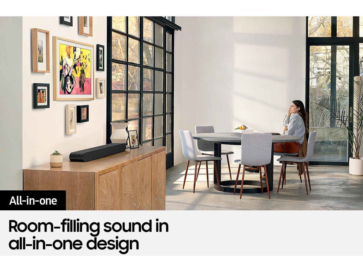 Kompakt Soundbar utformad för att fylla rummet med ljud i varenda vinkel och vrå.