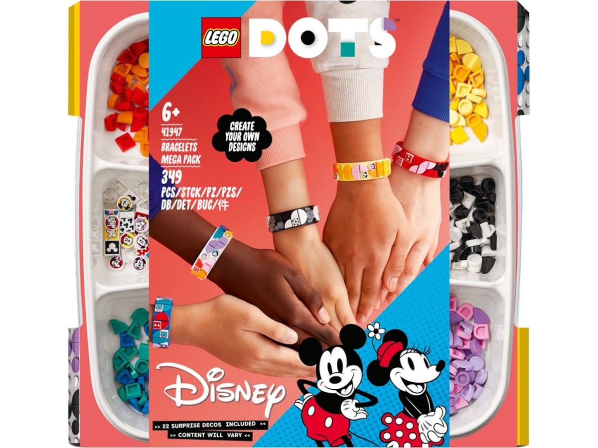 Hylla kärleken till Disneys Musse Pigg med vänner eller familj med detta fantastiska megapack med armband! Lägg ut de färgglada LEGO® DOTS armbanden och tryck fast plattorna precis hur du vill. Använd glitterplattor och exklusiva dekorerade plattor för att uttrycka din kreativitet. Hitta mönsterinspiration på och inuti förpackningen, eller släpp loss din kreativitet och visa vad du kan göra! #youDOTyou