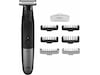 - Designad för precision och kontroll: Trimma både uppåt och nedåt med tvåvägskammen. Säker torr- och våtrakning av ansiktet och kroppen tack vare gummihandtaget med antiglidgrepp