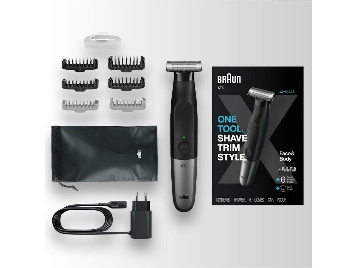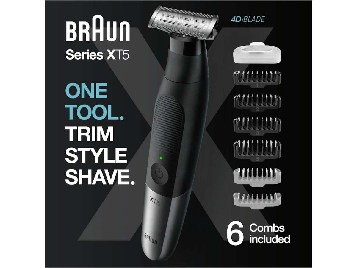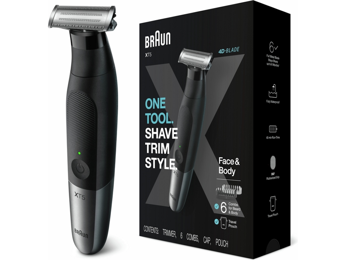 Braun Series XT5 är en allt-i-ett-apparat för män med skäggtrimmer, kroppstrimmer och rakapparat.