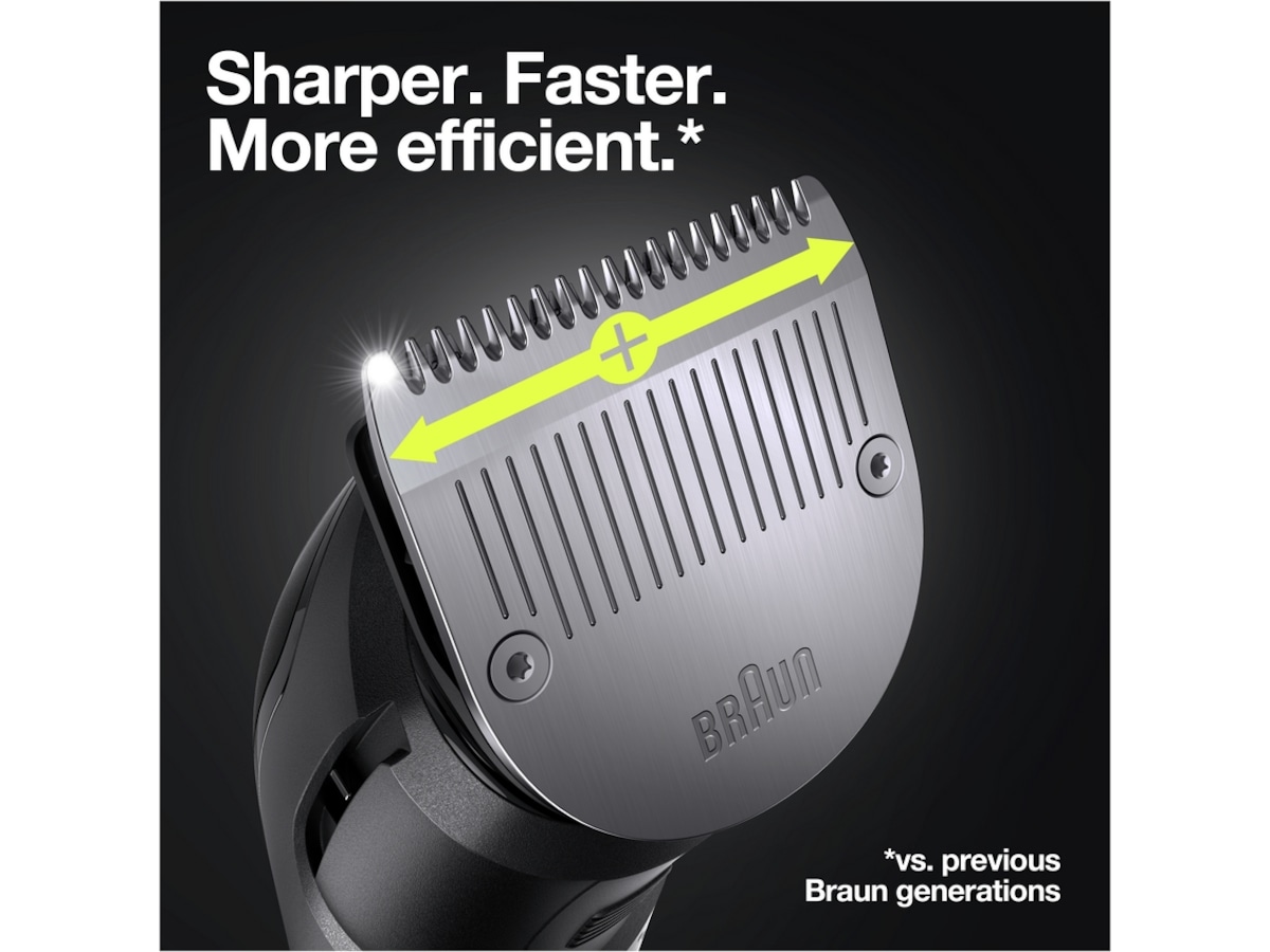 - Vassare. Snabbare. Effektivare: Trimmerhuvudet har ett bredare skärområde och klipper mer hår i varje drag (jämfört med tidigare Braun-trimmers). Få din look i färre drag