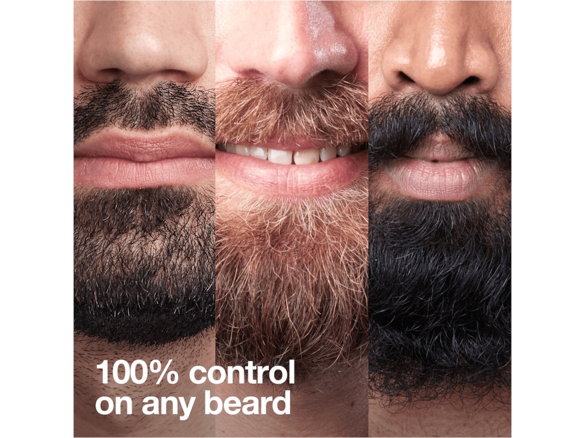 - 100 % kontroll från topp till tå: AutoSense-motor och precisionskam med 20 % mindre plast ger en enkel trimning, oavsett om det gäller mustasch, getskägg, stubb eller kroppshår