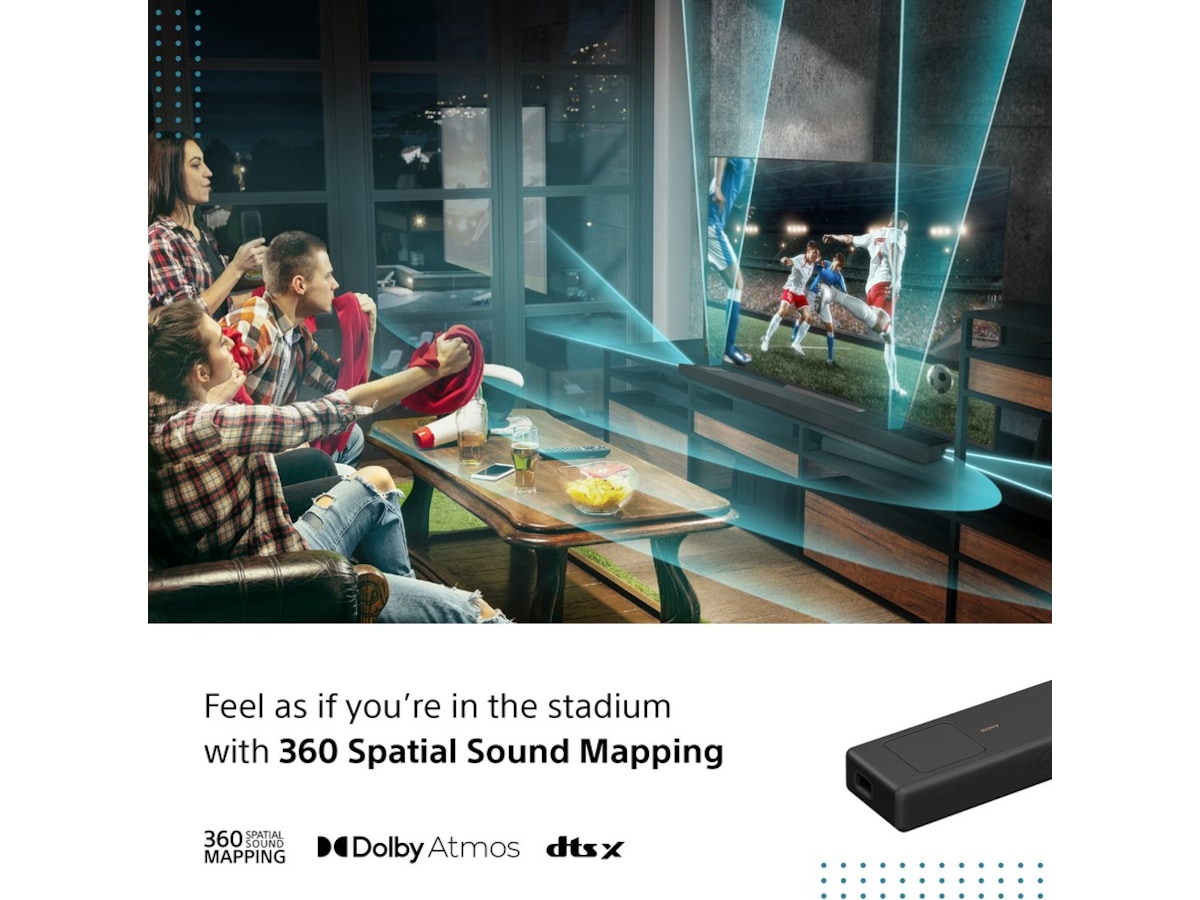 Sound Field Optimization-tekniken mäter intelligent layouten av ditt rum genom att använda de inbyggda mikrofonerna för att ställa in ljudet för bästa möjliga ljudupplevelse. Lägg till de bakre högtalarna som tillval för en unik 360 Spatial Sound Mapping-upplevelse, som levererar det ultimata uppslukande filmiska ljudet och placerar dig mitt i händelsernas centrum.