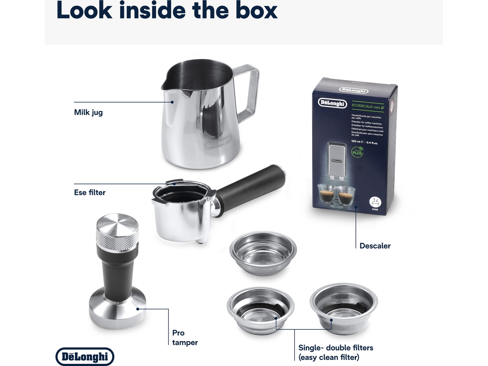 - Filterkorgar med hög kapacitet för en godare och mer intensiv espresso