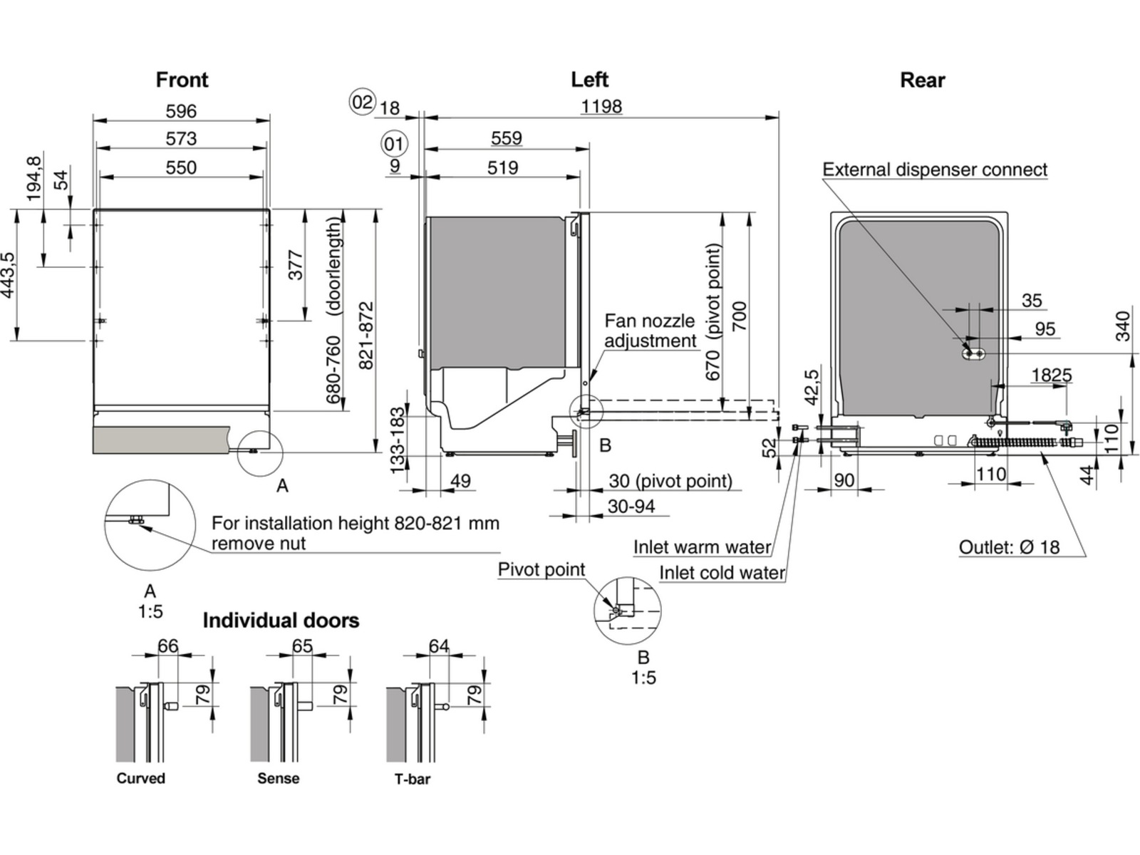 Utvalda modeller är utrustade för att anslutas till ett externt pumpsystem för automatisk dosering. Den har plats för två kemikalier: diskmedel och stresslösare, och gör det möjligt att använda professionella kemikalier. Detta gör att maskinen kan prestera optimalt även på mycket korta program.