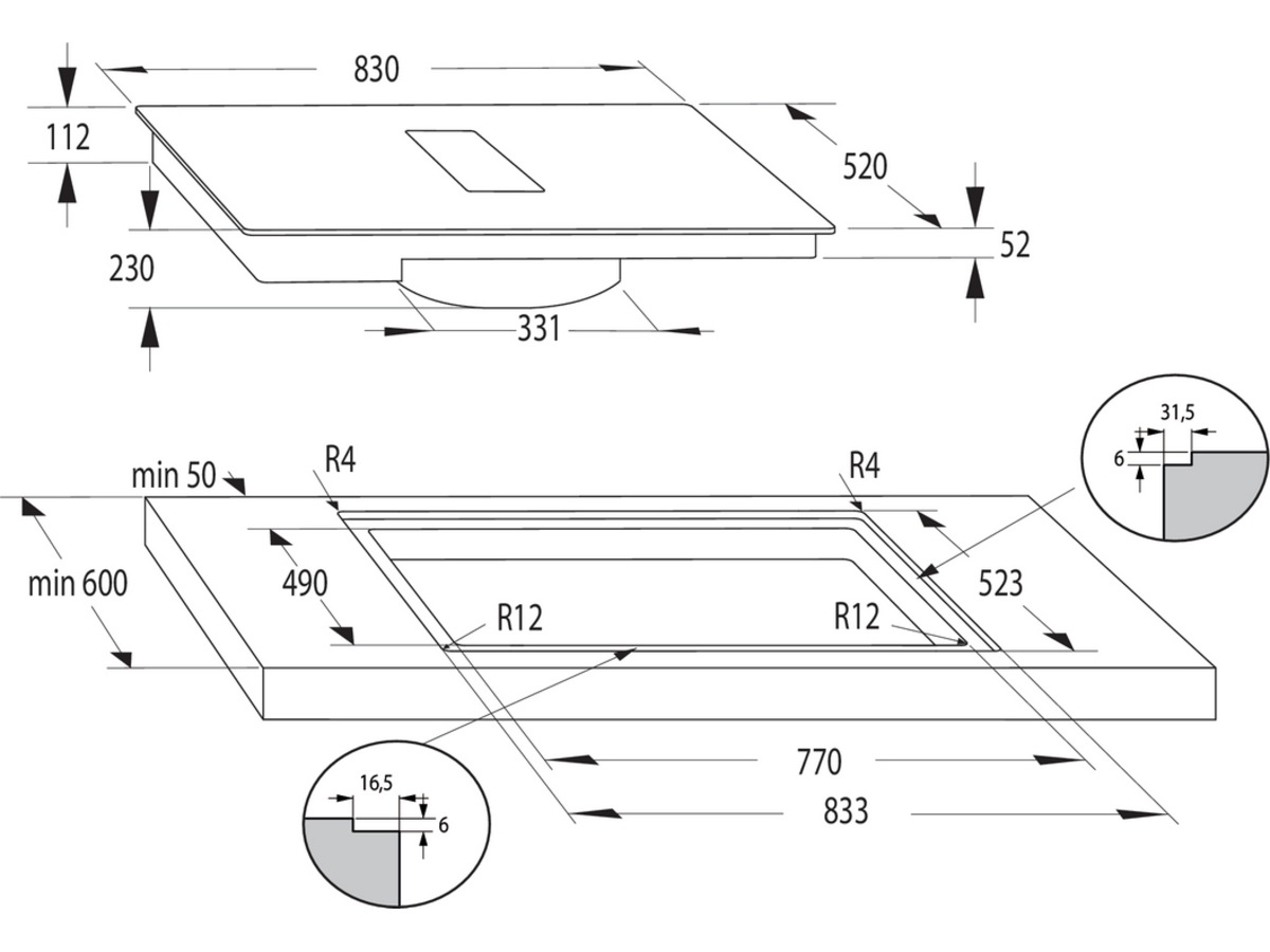 - Montering i plan med bordsskiva