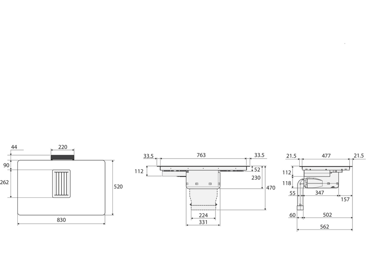 Enhetens minimalistiska design gör att den enkelt och snabbt kan rengöras. Anti-fettfiltret och fettuppsamlingsbrickan kan enkelt tas ut från fläktens högra sida. Pannan för uppsamling av vätska samlar främst kondens, men även vätskor som kommer från oavsiktligt spill under tillagningen, och är lätt åtkomlig under apparaten. Alla delar kan diskas i diskmaskinen