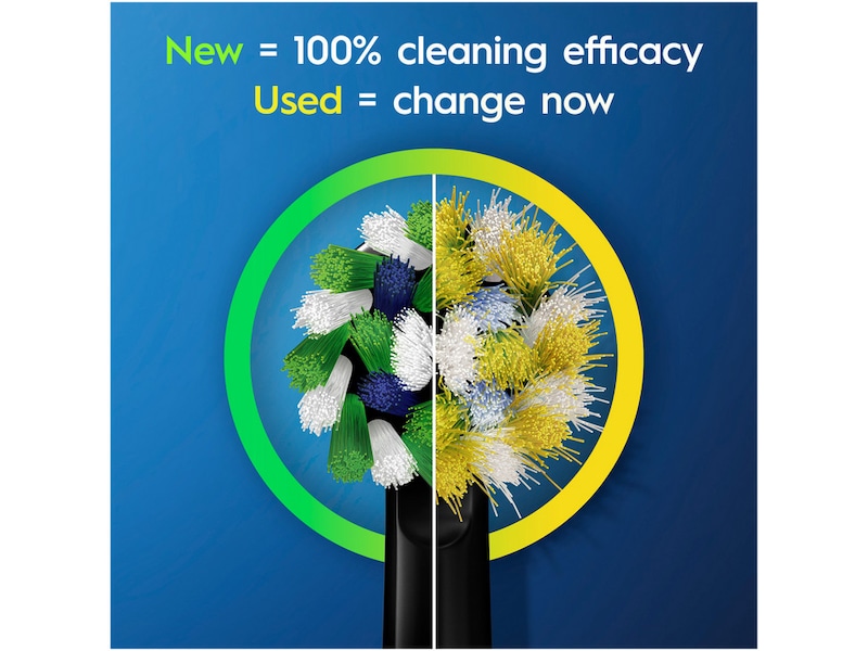 Tandläkare rekommenderar byte av borsthuvuden var tredje månad för att bibehålla en effektiv rengöring. Oral-B:s borststrån bleknar från grönt till gult beroende på individuell användning för att visa när du ska byta.