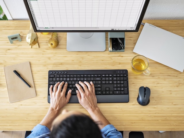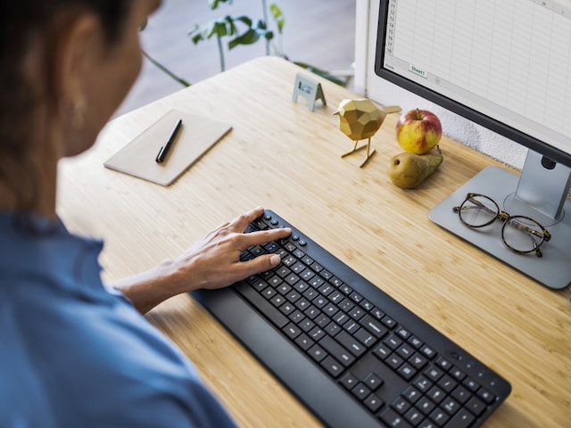 Ett helt trådlöst tangentbord med integrerat handledsstöd och mjukt tangentmotstånd håller dig produktiv och behaglig – och händerna glada.