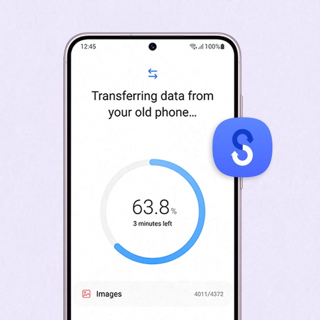 Med bara en enkel Wi-Fi-överföring eller snabb inloggning på ditt Samsung-konto är du redo. Med ännu färre steg kan du överföra dina appar, foton, meddelanden och mer från valfritt operativsystem till din nya mobil. (8,9)