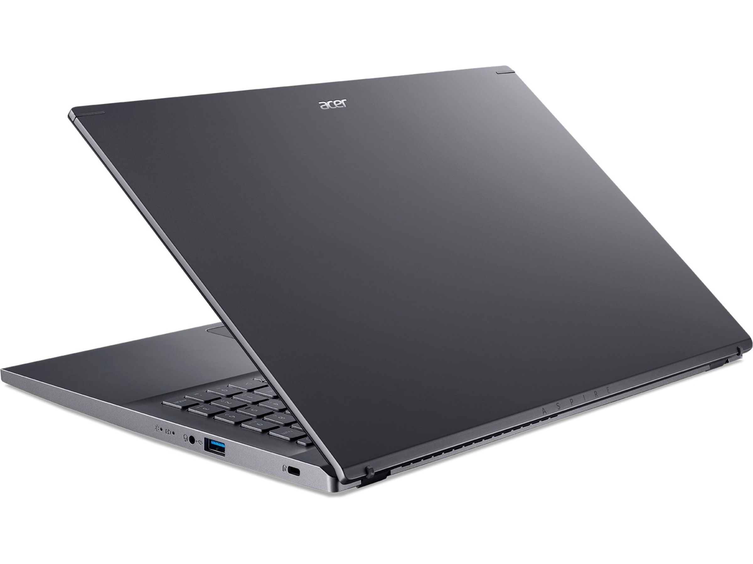 Aspire 5 har ett metallhölje och en ergonomisk design med upphöjt gångjärn. Tillgänglig i stålgrå färg för att matcha din stil.