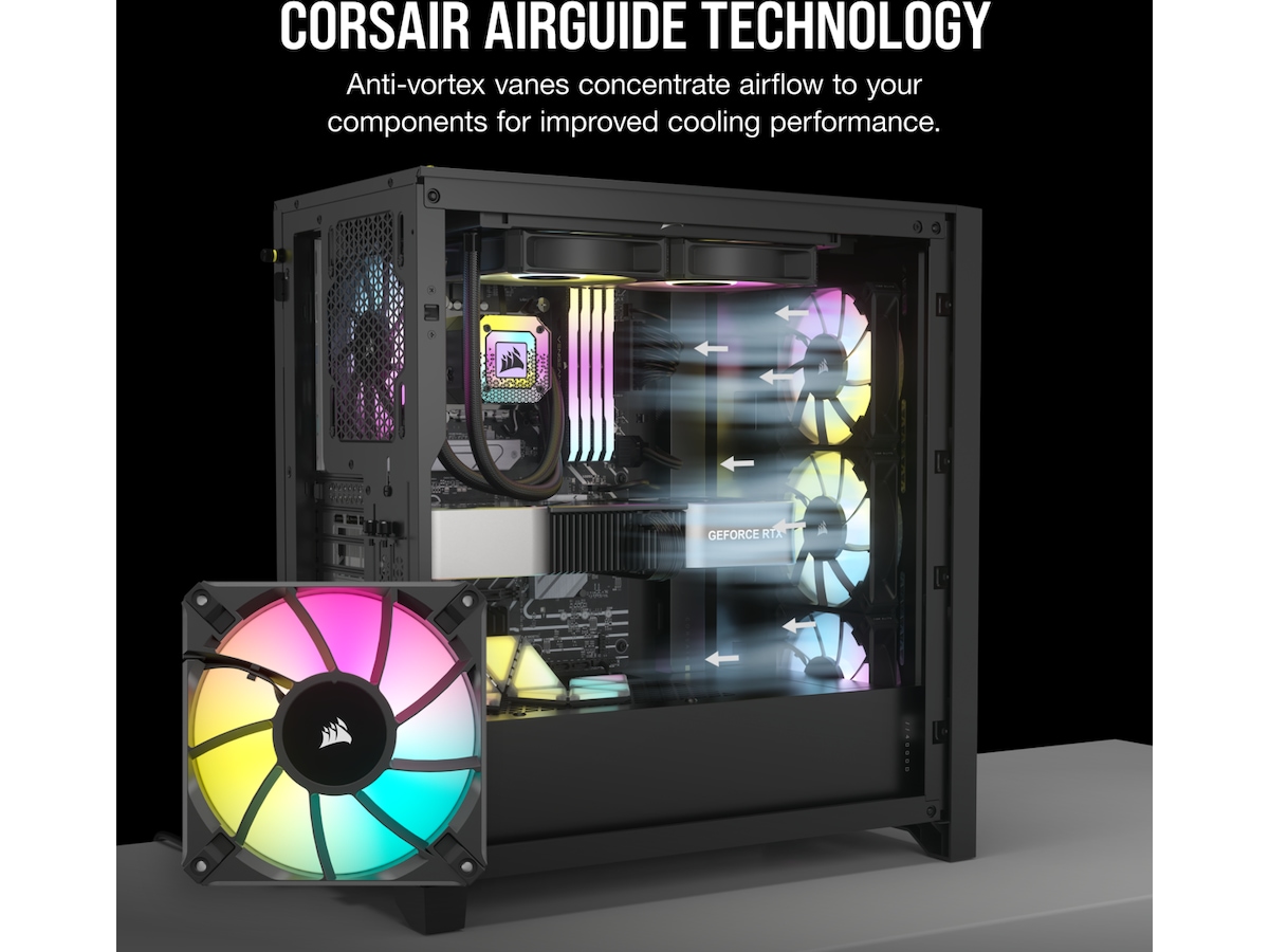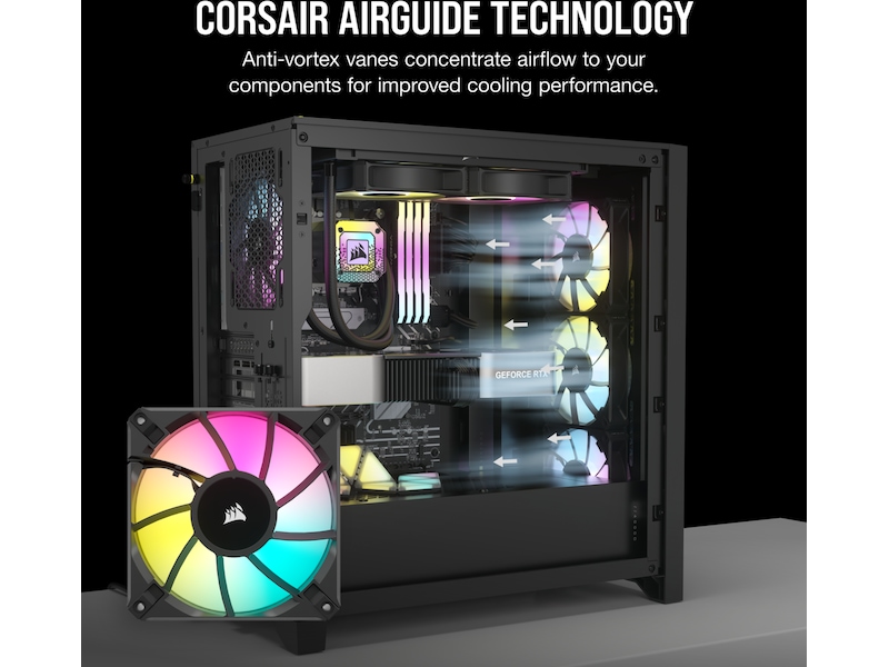 Egenskaper Zero RPM-fläktläge, CORSAIR AirGuide-teknik, Stöd för PVM (Pulse-width modulation), ARGB LED-belysning