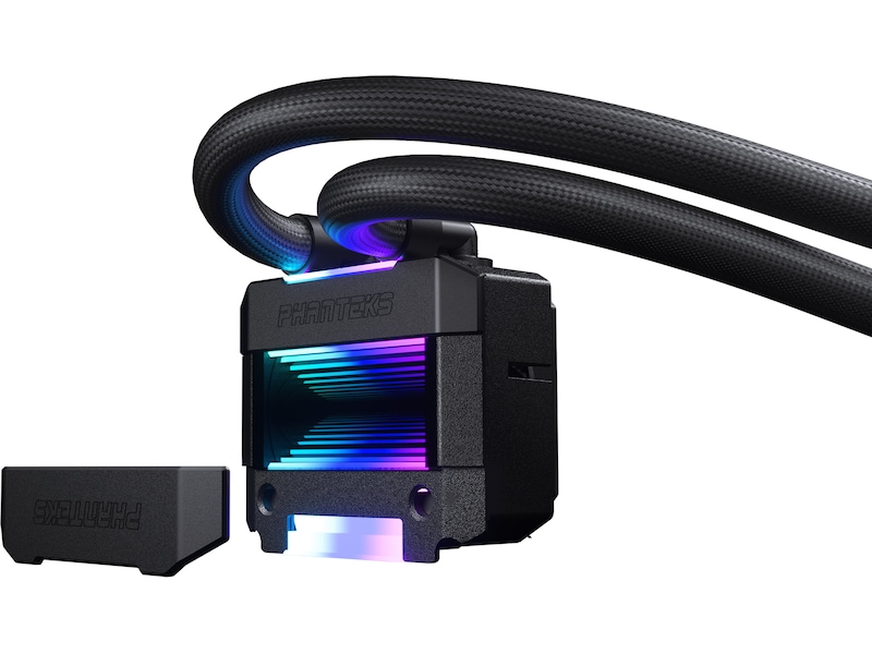 The Glacier One T30 Gen2 features an infinity mirror pump cap design with a tempered glass window, anodized aluminum covers and integrated D-RGB lighting. Simply connect it to a D-RGB equipped Phanteks chassis or motherboard to control, sync and expand your lighting setup.