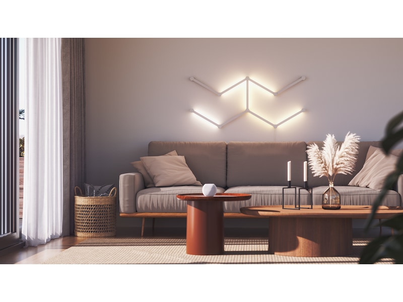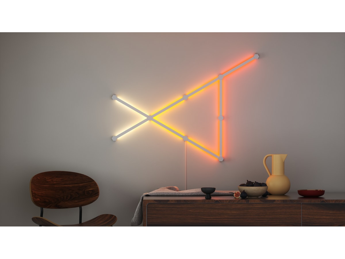 Nanoleaf Lines är smarta bakgrundsbelysta ljusstavar med LED-lampor som ger fantastisk RGB-belysning i en aldrig tidigare skådad modulär formfaktor. Koppla ihop Lines till dina egna personliga geometriska layouter och anpassa över 6 miljoner färger och ljusanimationer för att skapa en design som är unik för ditt rum.