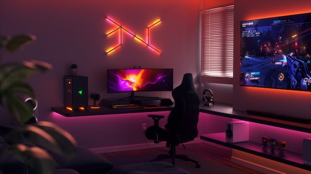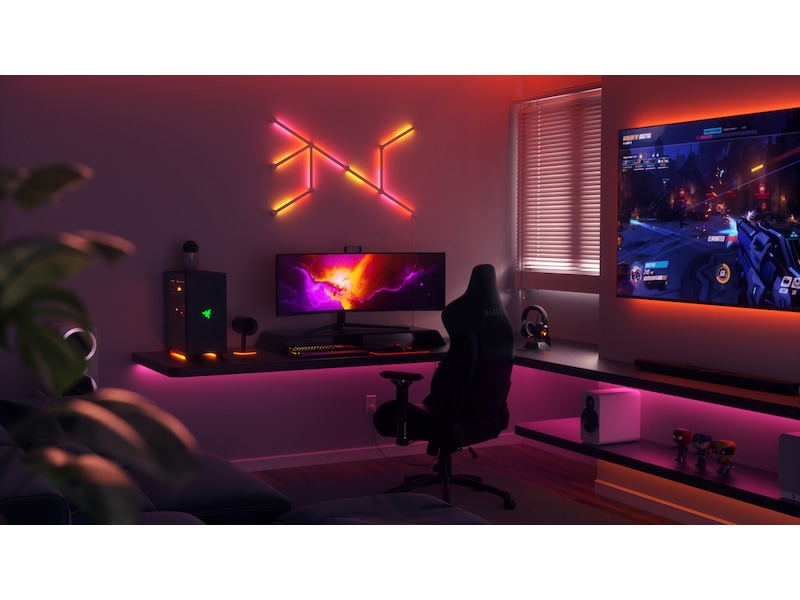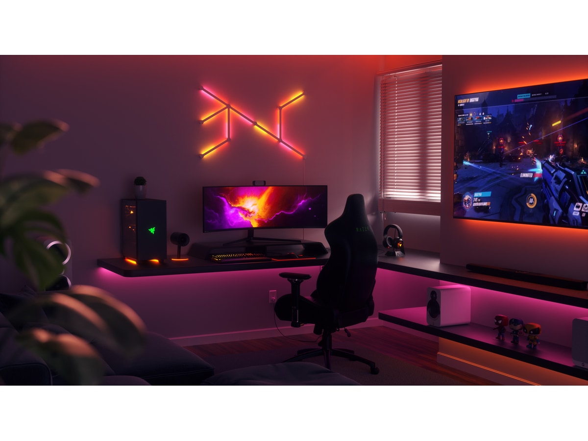 Synkronisera lysande färgeffekter mellan alla dina kompatibla Nanoleaf- och Razer Chroma-enheter medan du spelar!