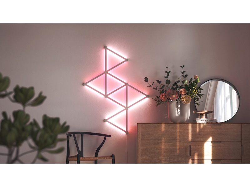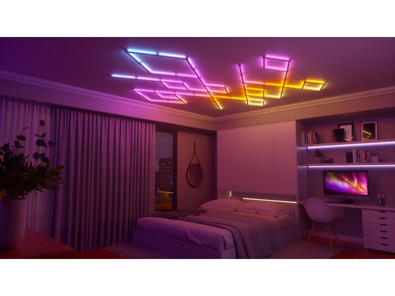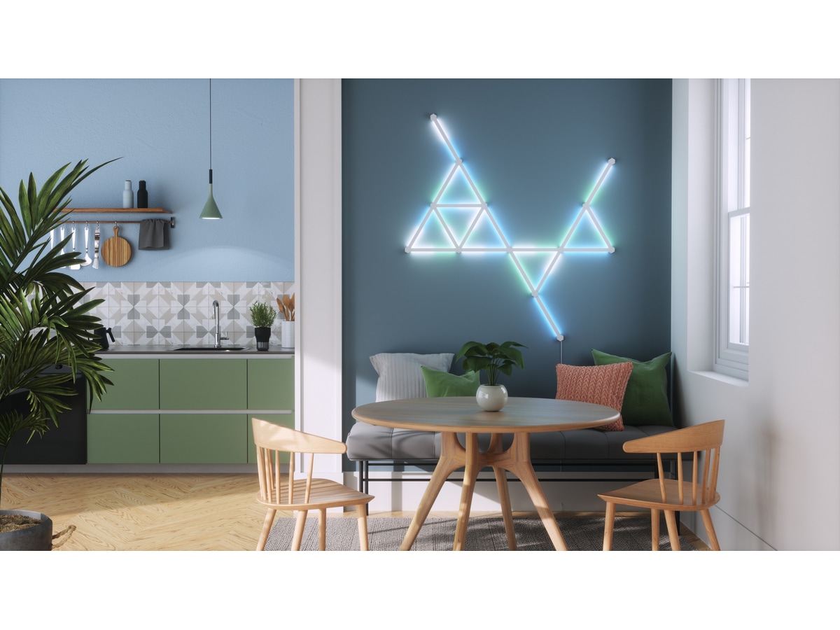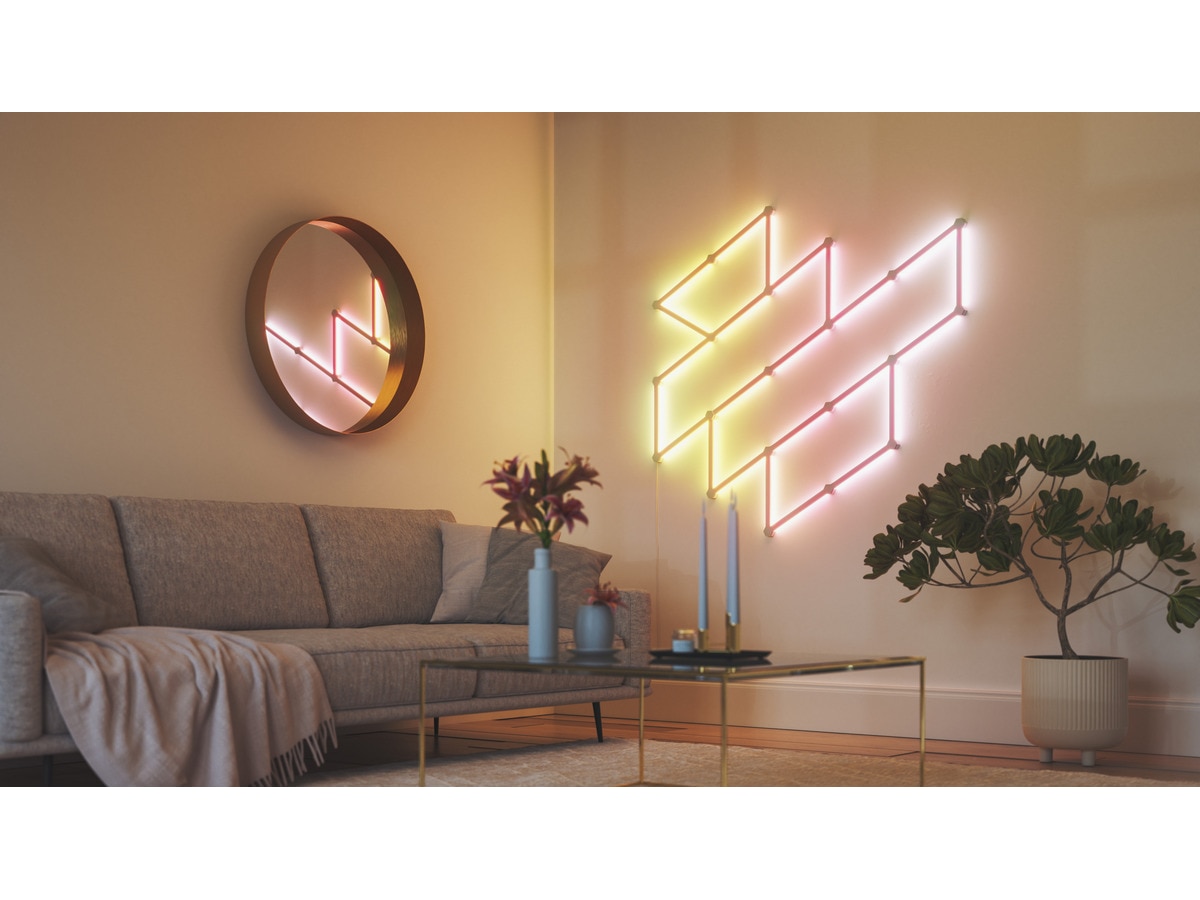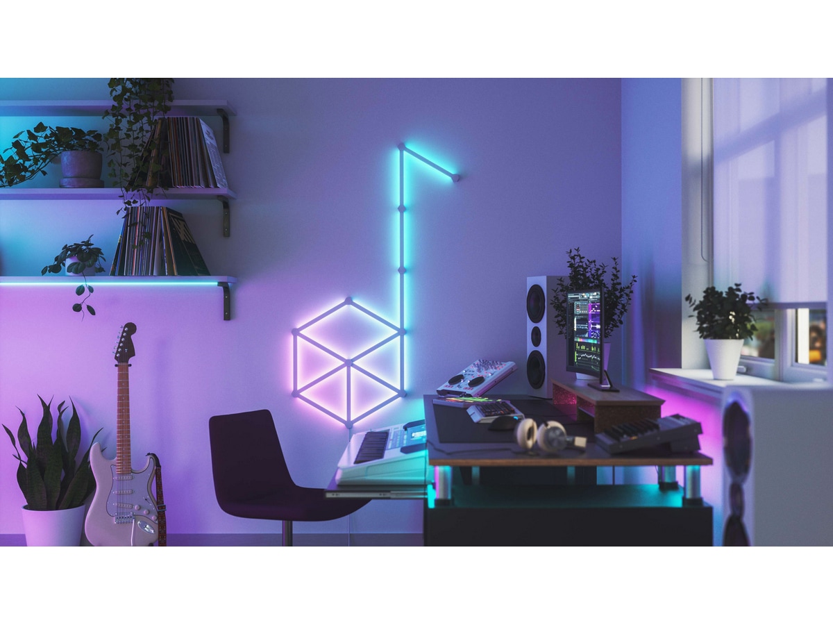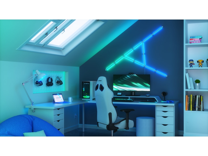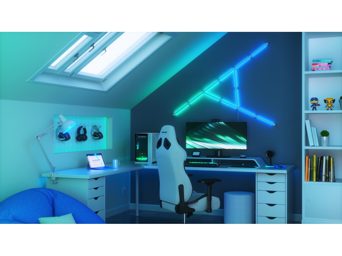 Nanoleaf Lines är smarta bakgrundsbelysta ljusstavar med LED-lampor som ger fantastisk RGB-belysning i en aldrig tidigare skådad modulär formfaktor. Koppla ihop Lines till dina egna personliga geometriska layouter och anpassa över 6 miljoner färger och ljusanimationer för att skapa en design som är unik för ditt rum.