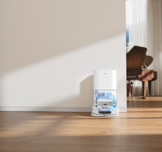 När L10 Ultra är klar med rengöringen går robotdammsugaren till stationen för att tömma dammbehållaren, fylla vattentanken och rengöra moppdukarna och sedan torka mopparna med varmluft - allt för att minska lukt. Den självdränerande stationen är praktiskt taget underhållsfri i upp till 60 dagar med undantag för att vattentanken kan behöva fyllas eller tömmas. L10 Ultra är därför alltid påfylld och redo att börja städa.