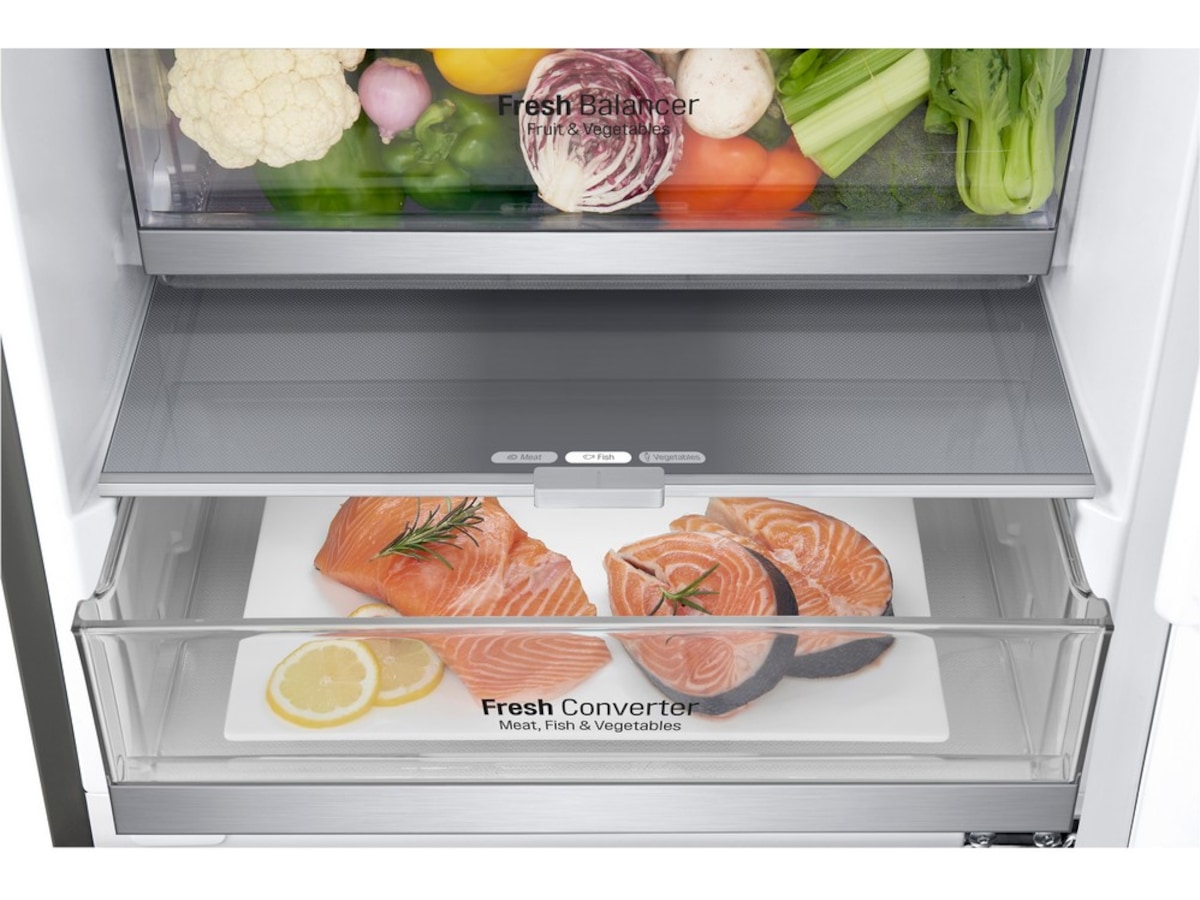 | Kylskåpshyllor/lådspecifikationer | 1 x krisp - Fresh Balancer, 1 x vinställ, 1 x i lager - vikbar |