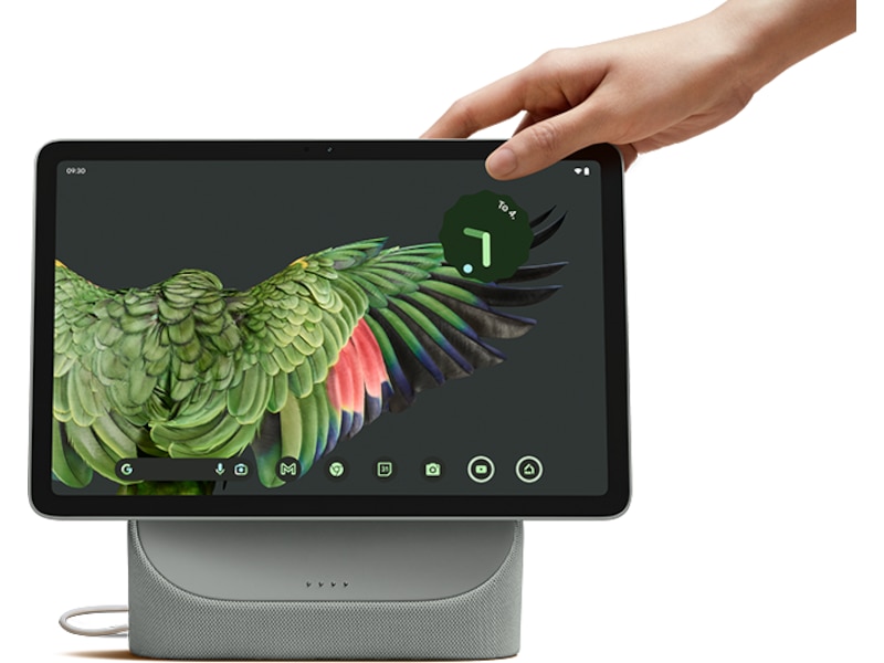 Med laddningsstationen med högtalare till Pixel Tablet kan du få hjälp i flera rum.