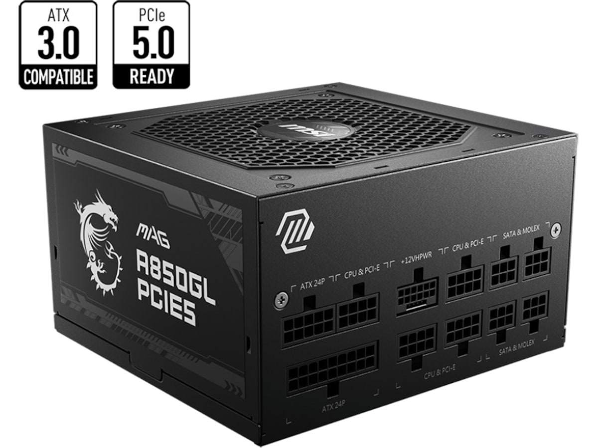 Den har en utgångsport som är kompatibel med PCIe 5.0 och Intel PSDG (Power Supply Design Guide) ATX 3.0, även MAG A850GL PCIE5-strömförsörjningen kan hantera upp till 2x total strömavbrott och 3x GPU-strömavbrott.
