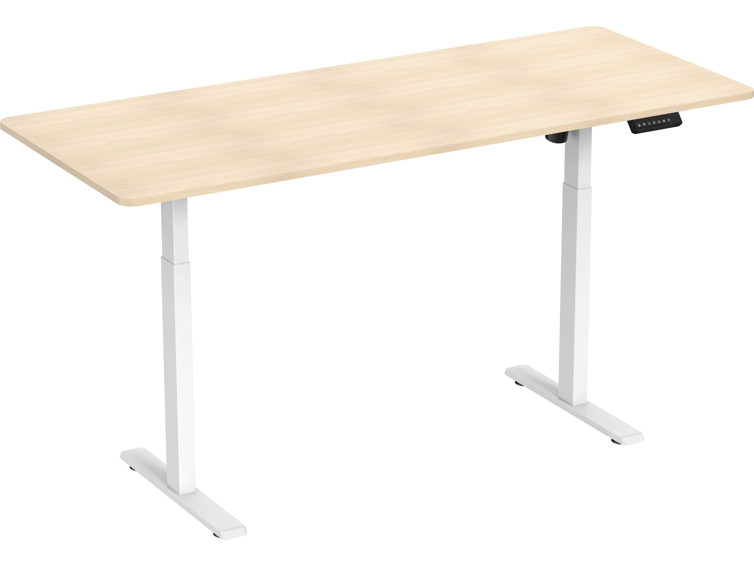 Med knapparna på displayen kan du enkelt justera höjden på bordsskivan. Höjden kan justeras med enkla tryck, så att du kan variera mellan sittande eller stående position när du tillbringar tid framför skärmen. Motorn har tre knappar som kan justeras till önskad höjd, vilket gör det snabbt och enkelt att ändra höjden på skrivbordet.