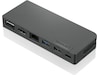 - Plug and Play, speciellt med ThinkPad-system. Huben är lätt att använda och redo för drivrutiner och fungerar med alla fullt fungerande USB-C-enheter, men lyser verkligen med ThinkPad-system och levererar funktioner i företagsklass som MAC-adresspassering, Wake-on-LAN och PXE-start