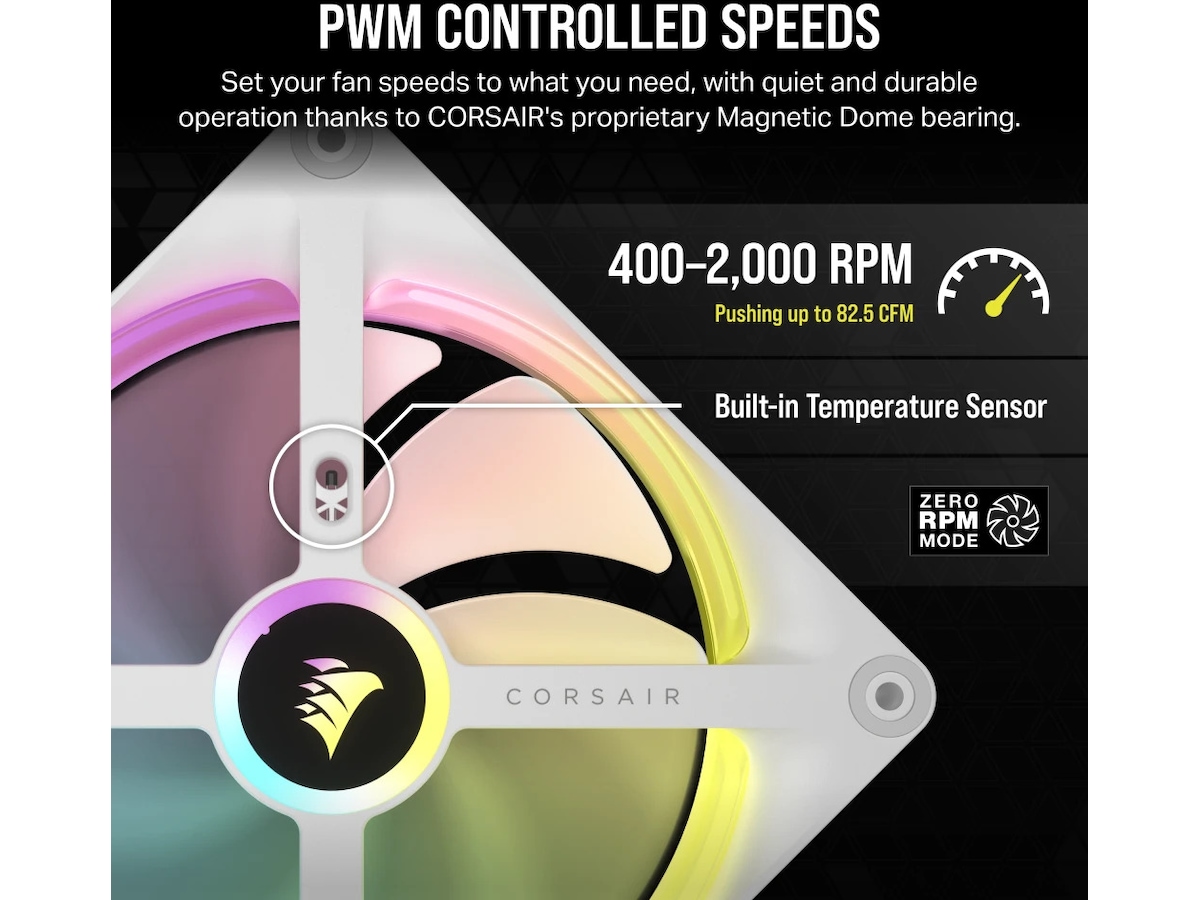 PWM-kontroll låter dig ställa in fläkthastigheter exakt så att dina fläktar bara snurrar så fort de behöver, vilket resulterar i mindre fläktljud totalt sett, medan stöd för Noll RPM innebär att de kan sluta snurra helt vid låga belastningar.
