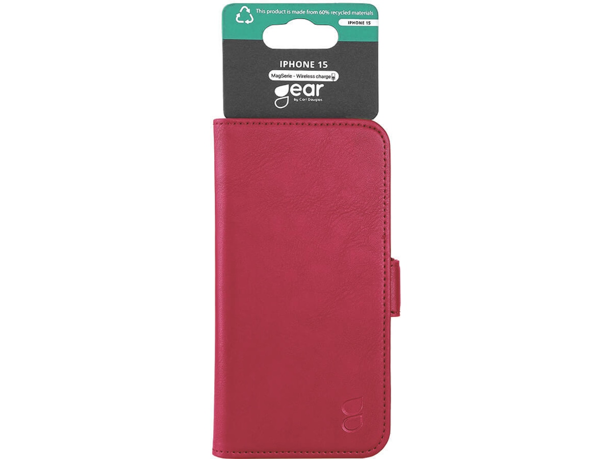 Gear iPhone 15 Plånboksfodral (djupröd)