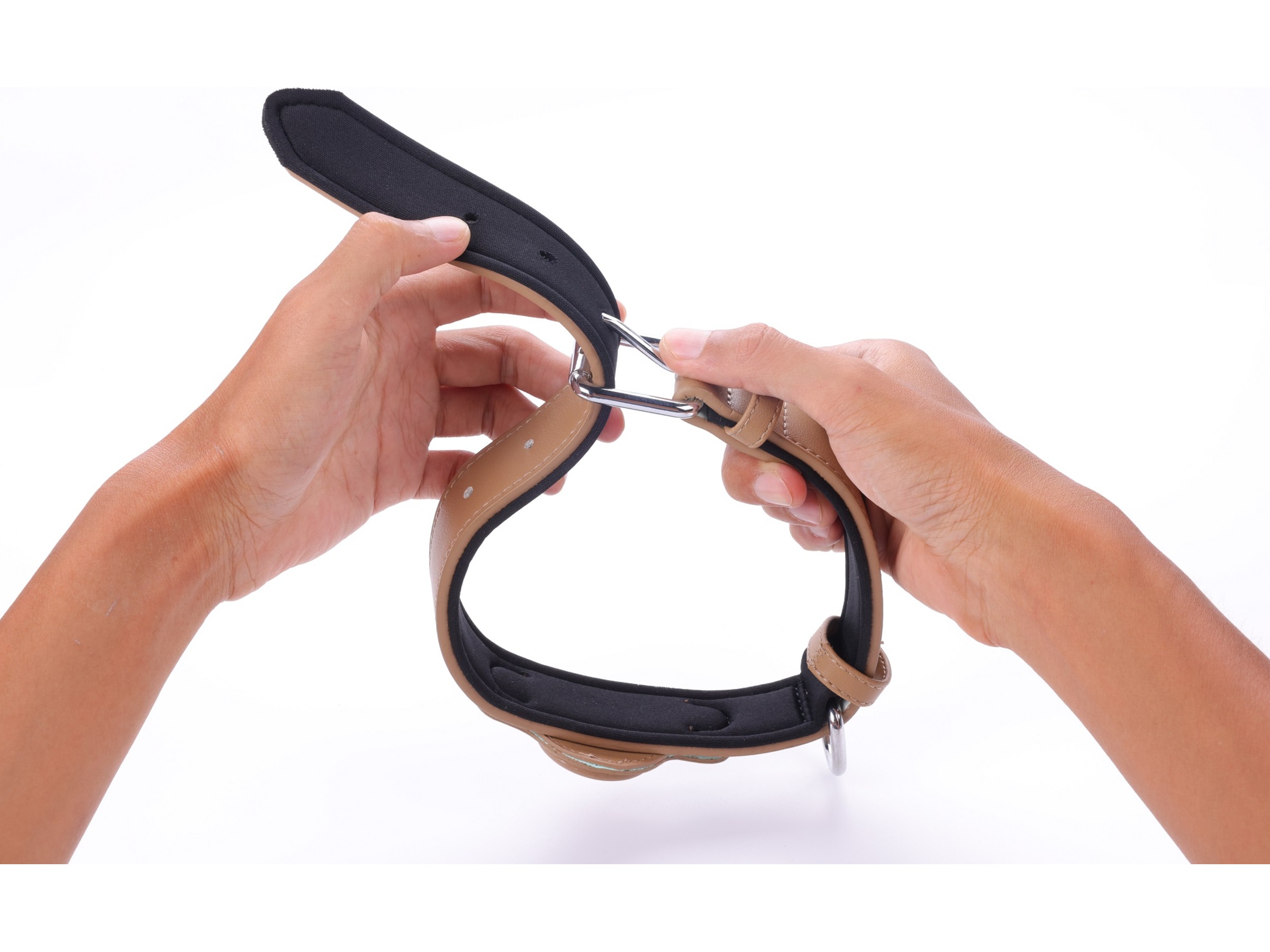 Kragen är tillverkad av mycket slitstarkt veganskt läder och är även fodrad med mjukt material för att skydda husdjurets hals från skav.
