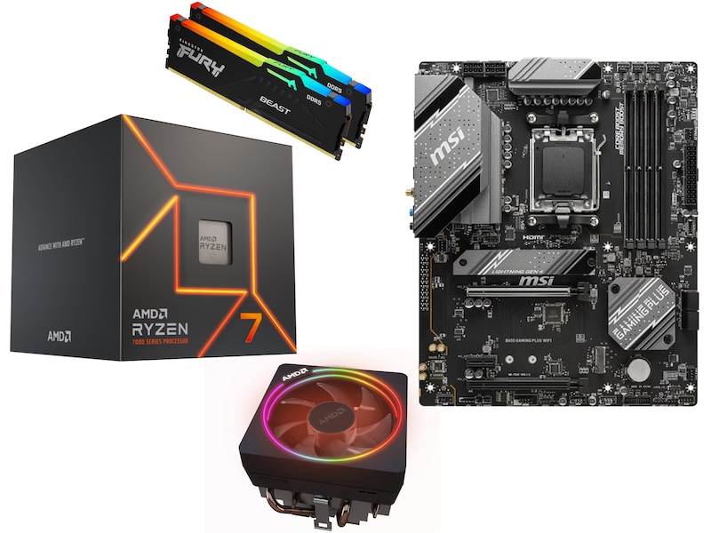 AMD Ryzen™ 9 7900, AMD Ryzen™ 7 7700 och AMD Ryzen™ 5 7600-processorer. Med enkel överklockning1, låg strömförbrukning och förstklassiga AMD Wraith-kylare som ingår i förpackningen levererar dessa AM5-CPU:er den höga prestanda och höga effektivitet som seriösa spelare kräver.