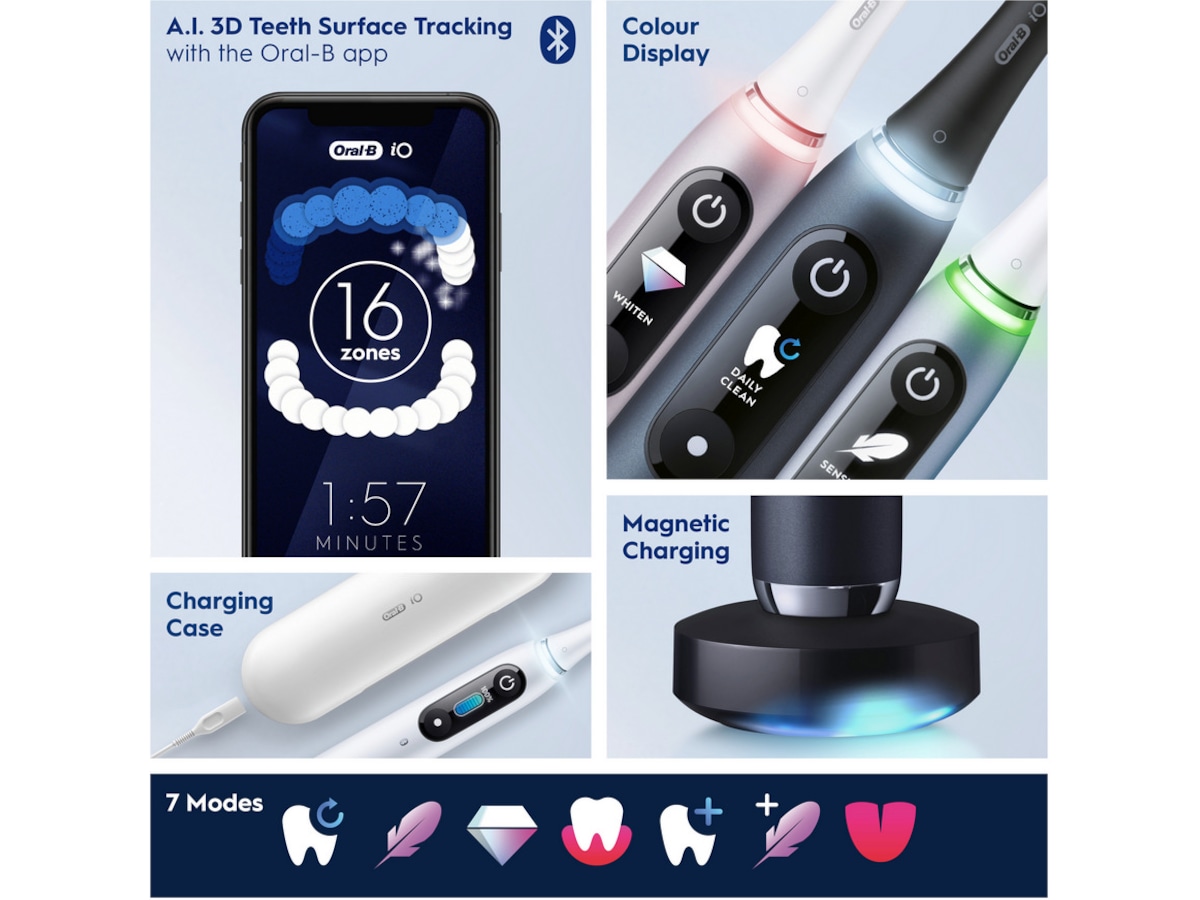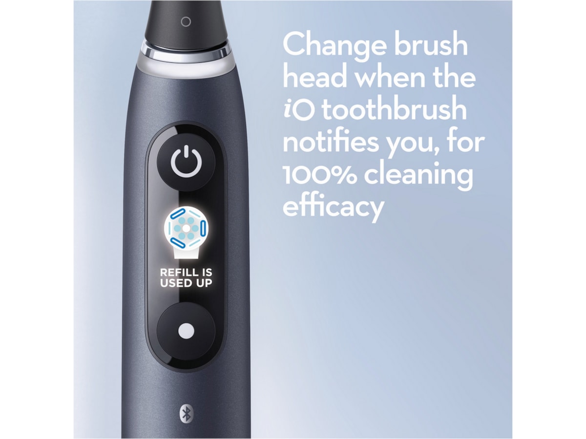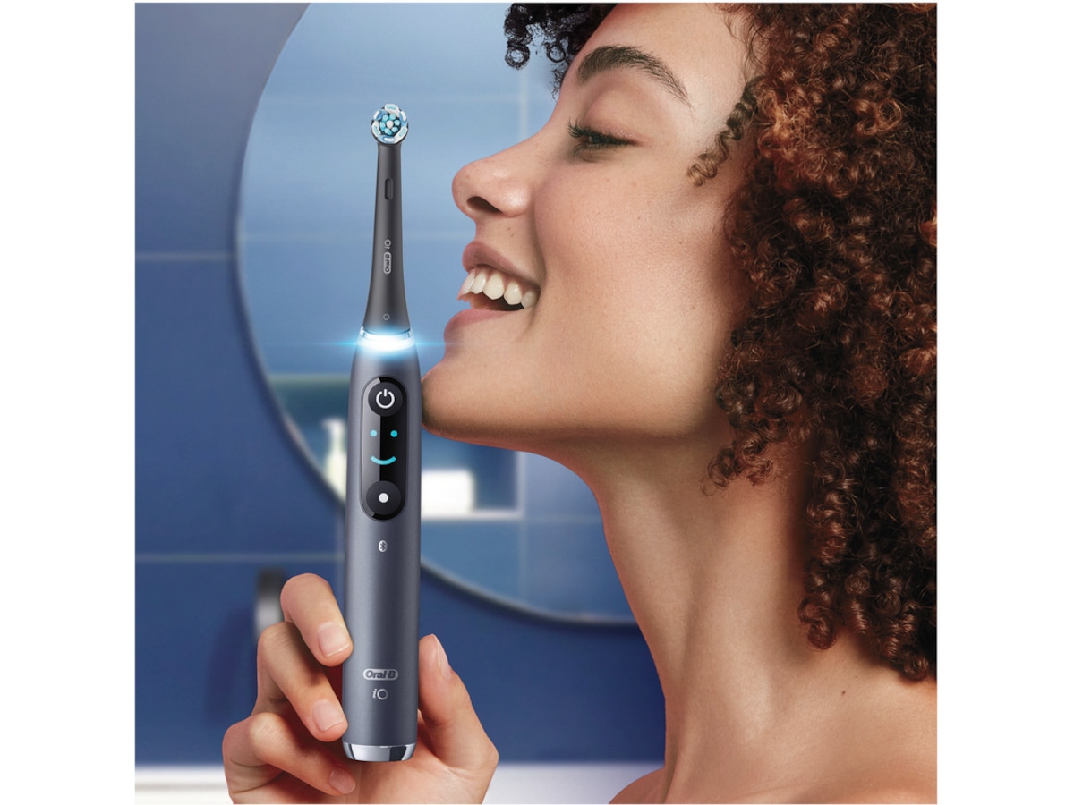 iO kombinerar Oral-B:s unika runda borsthuvud med skonsam rengöringskraft från mikrovibrerande borststrån.