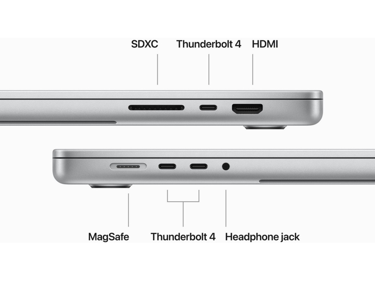 - ANSLUTA TILL ALLT – Denna MacBook Pro har en MagSafe-laddningsport, tre Thunderbolt 4-portar, en SDXC-kortplats, en HDMI-port och ett hörlursuttag. Få snabb trådlös anslutning med WiFi 6E (5) och Bluetooth 5.3. Och du kan ansluta upp till två externa skärmar med M3 Pro, eller upp till fyra med M3 Max.