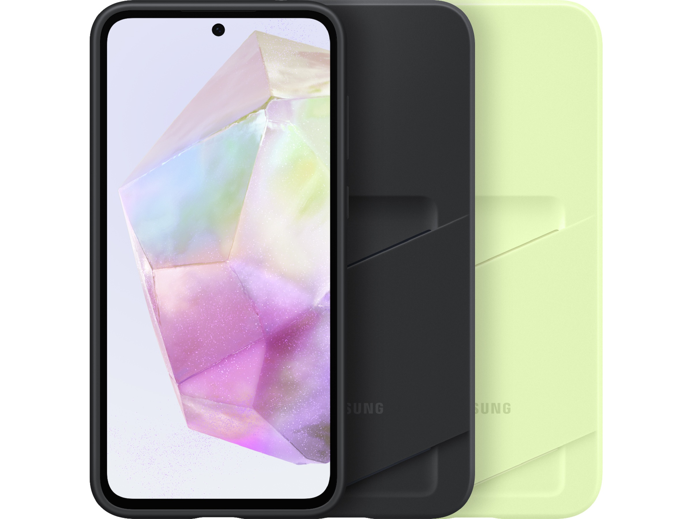 Galaxy A35 5G Card Slot Case är tillverkat av TPU*-material för extra skydd mot repor och stötar, och är så stretchigt att det är lätt att ta på och av. Card Slot Case finns i färgerna Black och Lime, vilket gör att enheten ser både attraktiv och praktisk ut.