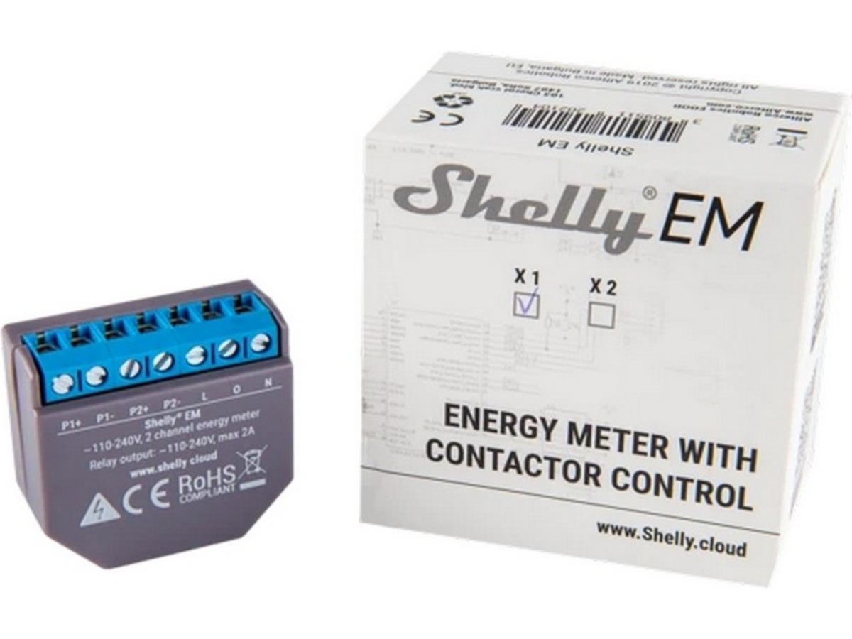 Shelly EM är en Wi-Fi-driven energimätare med kontaktorkontroll. Det låter dig samtidigt övervaka förbrukningen av alla hushållsapparater, elektriska kretsar och kontorsutrustning (lampor, kraftledningar, säkerhetssystem, värme, kyla, etc.) i 2 kretsar på samma fas eller individuellt. Shelly EM är perfekt för att mäta solenergiproduktion, övervaka hushållens förbrukning och styra tyngre apparater.