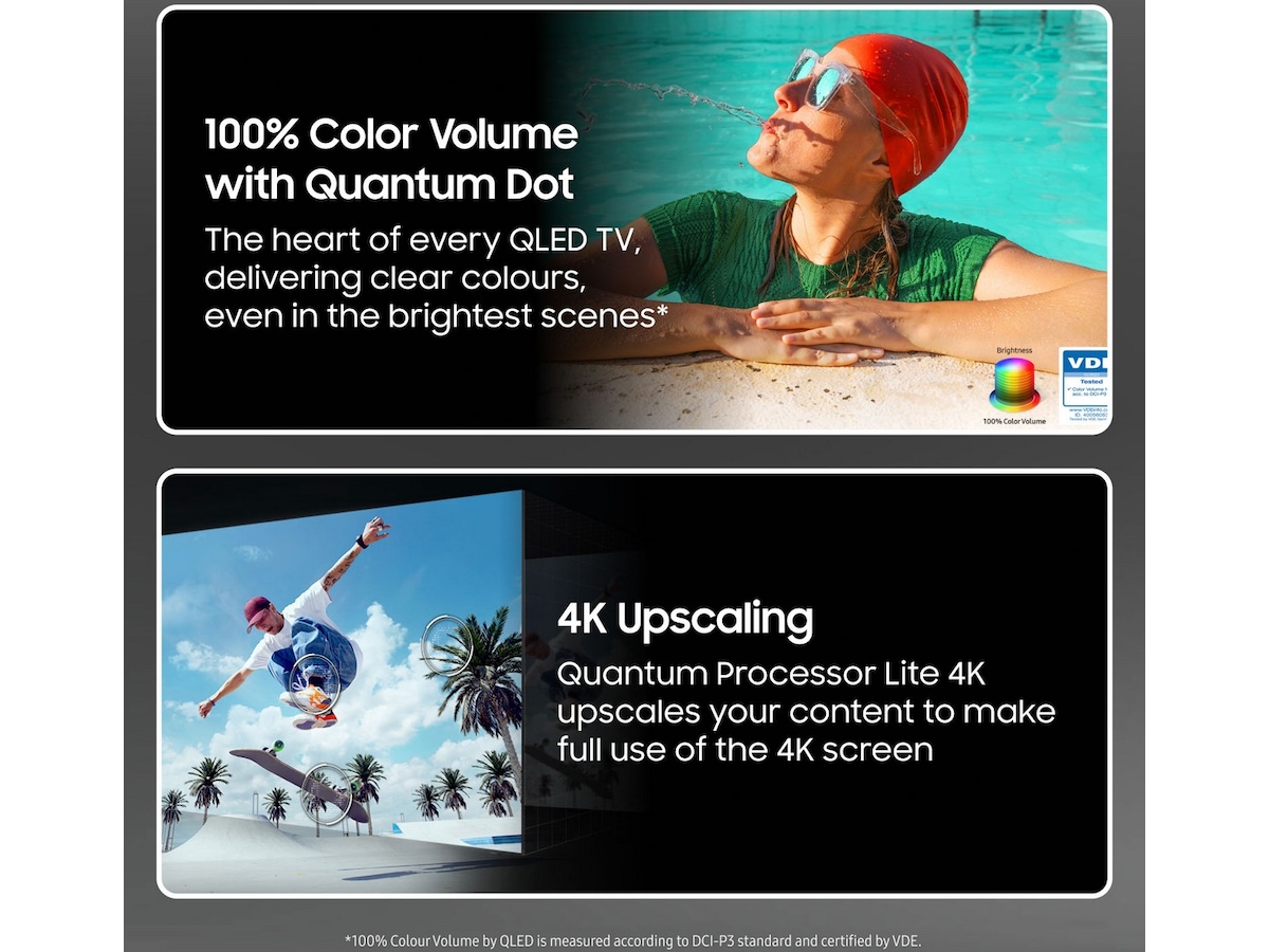 *100 % Color Volume by QLED är mätt enligt DCI-P3 standard, och certifierat av VDE.