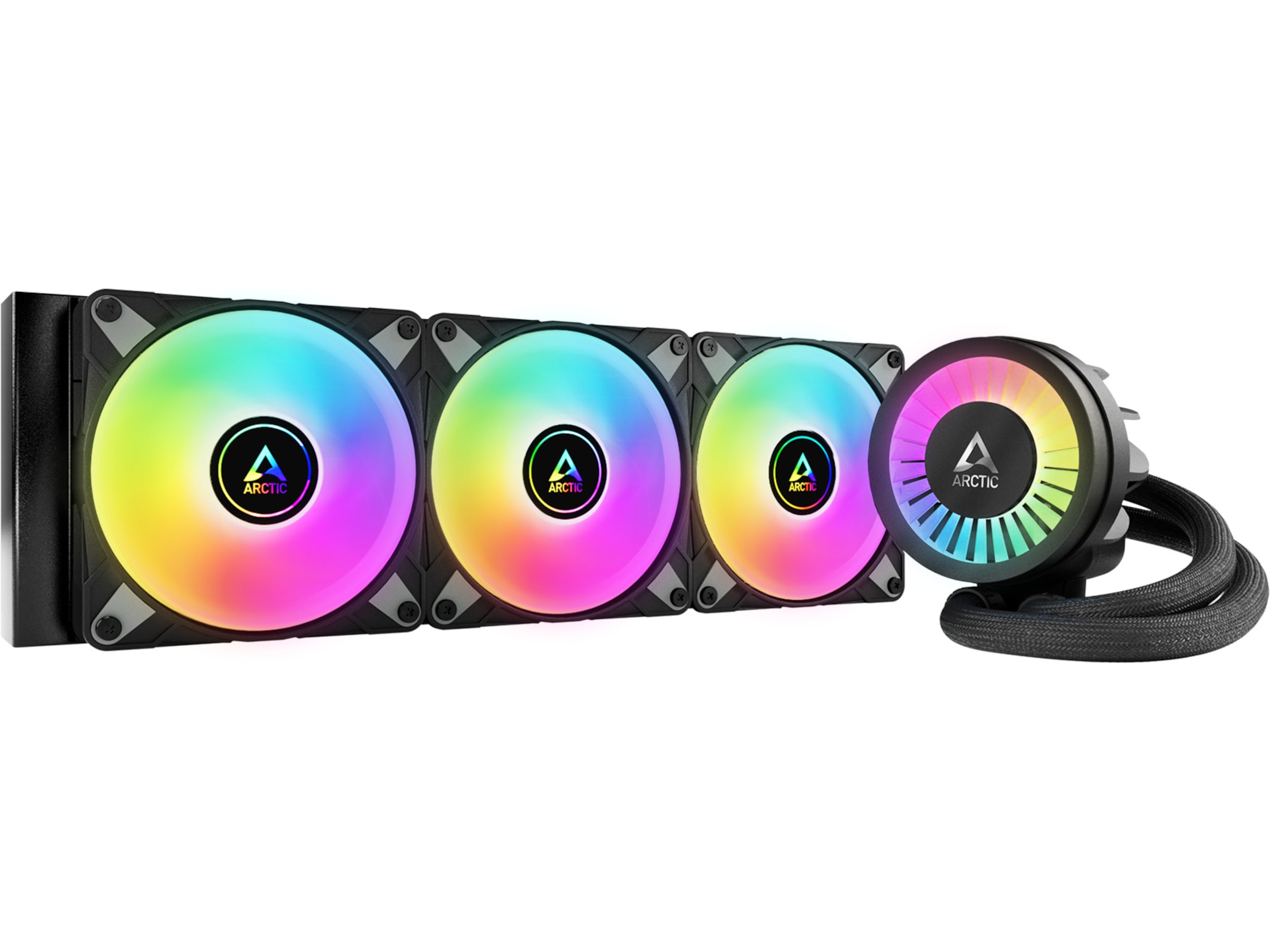 Liquid Freezer III erbjuder enastående kylprestanda i fyra olika storlekar och tre varianter. Medan den svarta versionen är helt svart, finns A-RGB-versionerna i svart eller vit och har digitalt adresserbar belysning för pumphuvudet och kylarfläktarna. Med kylarstorlekar på 240, 360, 280 och 420 erbjuder Liquid Freezer III den idealiska kombinationen av prestanda, teknik och design för alla!
