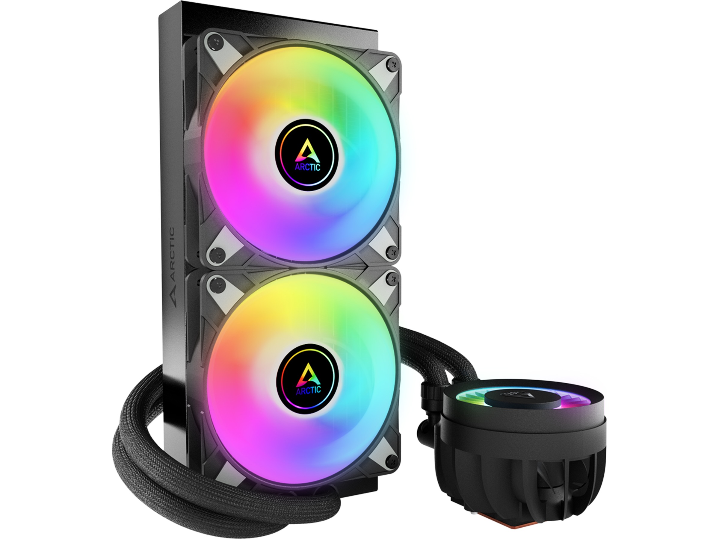 Liquid Freezer III erbjuder enastående kylprestanda i fyra olika storlekar och tre varianter. Medan den svarta versionen är helt svart, finns A-RGB-versionerna i svart eller vit och har digitalt adresserbar belysning för pumphuvudet och kylarfläktarna. Med kylarstorlekar på 240, 360, 280 och 420 erbjuder Liquid Freezer III den idealiska kombinationen av prestanda, teknik och design för alla!
