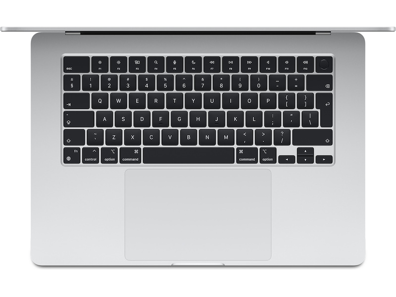 2) Skärmen på 15-tums MacBook Air har rundade hörn upptill. Skärmen mäter 15,3 tum på diagonalen i en rektangel. (Det faktiska synliga skärmområdet är mindre.)