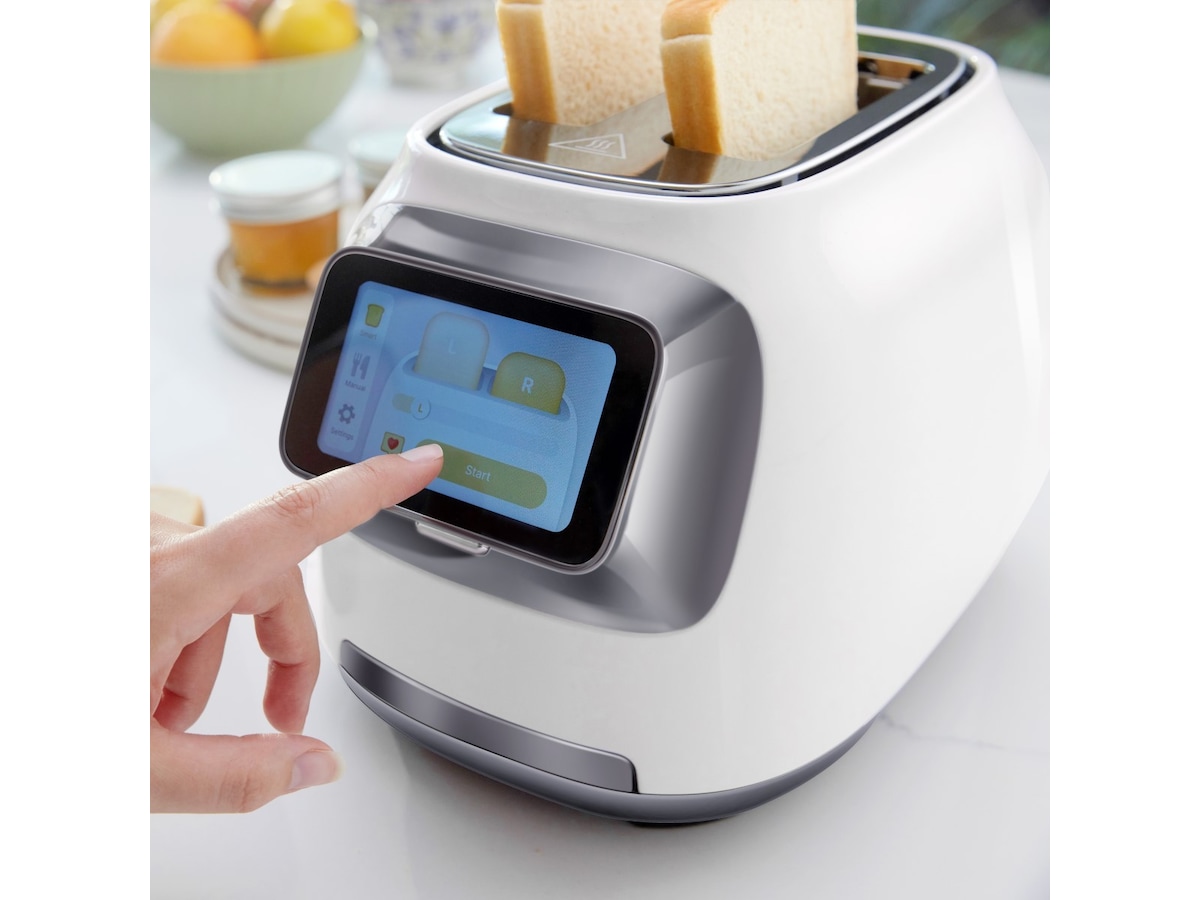 Tineco introducerar en snygg, vit brödrost med en 4-tums LCD-skärm. Denna moderna brödrost ger användarna möjlighet att anpassa rostningen i varje kammare individuellt, så att hela familjen kan njuta av brödskivorna precis som de vill ha dem.